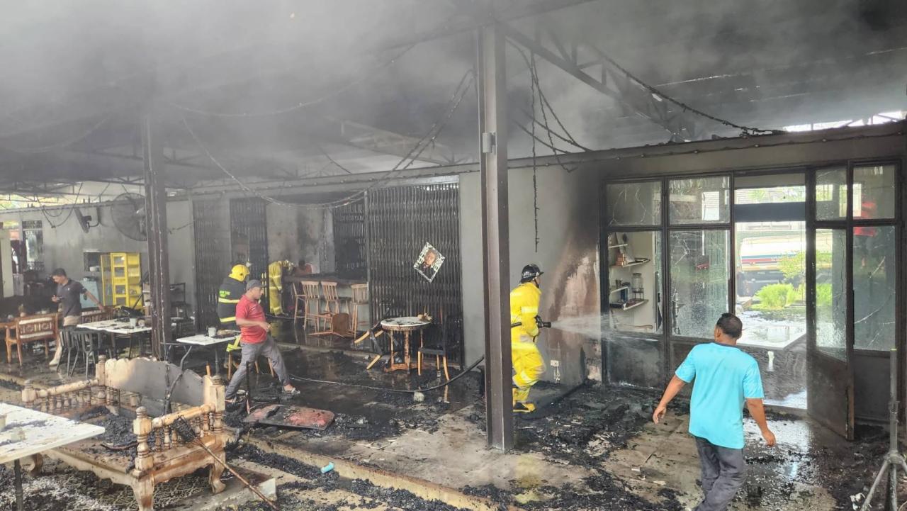 ที่เกิดเหตุพบเพลิงกำลังลุกไหม้หลังคา ฉนวนกันความร้อนจากหลังคาตัวอาคารของร้านอาหาร ลักษณะโครงสร้างทำด้วยเหล็ก ความสูงประมาณ 15 เมตร ชั้นเดียว จำนวน 6 คูหา เพลิงได้ลุกไหม้เป็นเชื้อเพลิงทำให้ไฟลุกลาม และฉนวนที่โดนความร้อนได้โดนเพลิงไหม้ และไฟได้หยดลงมาบนโต๊ะอาหารและอุปกรณ์ต่างๆ ภายในร้านอาหารดังกล่าว เพลิงได้ลุกไหม้ไปทั่วทั้งร้าน เจ้าหน้าที่เร่งระดมฉีดน้ำเพื่อควบคุมเพลิงในร้าน ใช้เวลาประมาณ 30 นาที สามารถควบคุมเพลิงเอาไว้ได้ ตรวจสอบพบว่าเพลิงไหม้ร้านอาหารเสียหายทั้งหมด มูลค่าความเสียหายประมาณ 15 ล้านบาท