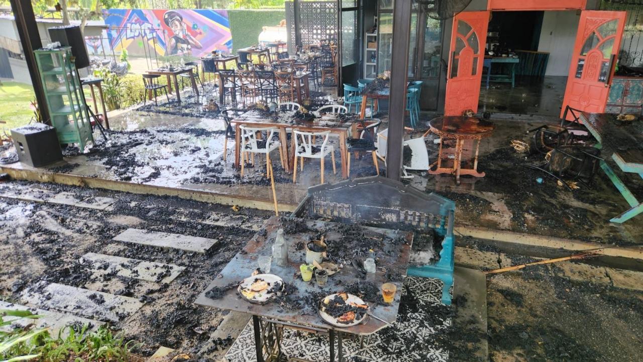 เมื่อเวลา 13.30 น. วันที่ 3 ธันวาคม 2566 ร.ต.ท.หญิง กัลย์สุดา แก้วก่า รอง สว.(สอบสวน) สภ.เชิงทะเล จ.ภูเก็ต รับแจ้งเหตุเพลิงไหม้ร้านอาหารโปรเจค อาร์ทิเซ็น (Project Artisan) อยู่ตรงข้ามซอยโคกโตนดซอย 6 หมู่ที่ 6 ต.เชิงทะเล อ.ถลาง จึงประสานรถดับเพลิงจาก อบต.เชิงทะเล และรถน้ำเอกชนอีก 2 คัน เดินทางไปตรวจสอบและควบคุมเพลิง