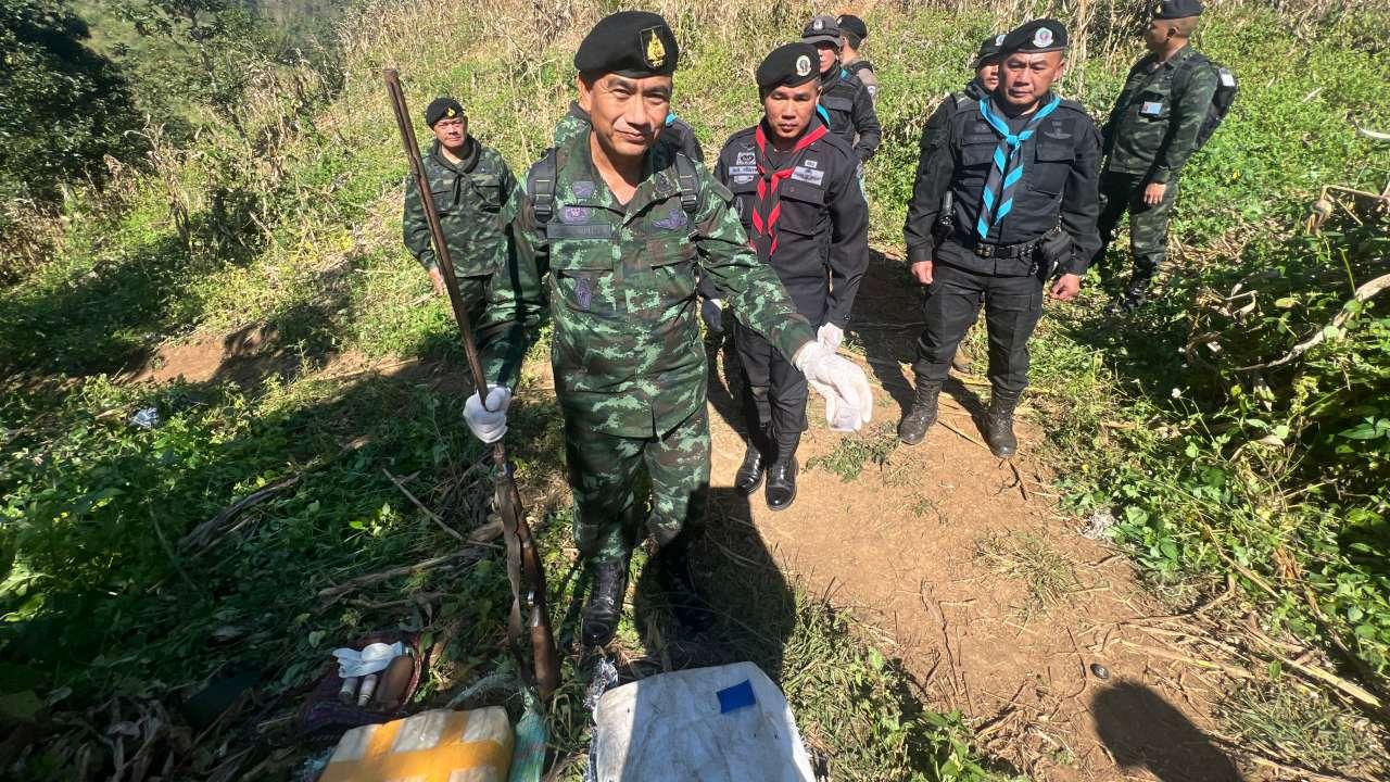 เมื่อวันที่ 2 ม.ค.67 ที่กองกำลังผาเมือง พล.ต.ประพัฒน์ พบสุวรรณ ผบ.กกล.ผาเมือง / ผู้อำนวยการศูนย์ปฏิบัติการป้องกัน และปราบปรามยาเสพติดกองกำลังผาเมือง เผยว่า ตามแผนเปิดยุทธการเพื่อสกัดกั้นและปราบปรามการลักลอบลำเลียงยาเสพติดและสิ่งผิดกฎหมายอื่นๆ ในห้วงเทศกาลส่งท้ายปีเก่าต้อนรับปีใหม่ 2567 ในพื้นที่จังหวัดเชียงใหม่ และจังหวัดเชียงราย หลังทราบข่าวจะมีการลักลอบลำเลียงยาเสพติดจากประเทศเพื่อนบ้านเข้ามายังประเทศไทย ในพื้นที่ อำเภอแม่อาย จังหวัดเชียงใหม่ เพื่อลำเลียงไปยังพื้นที่ตอนใน จึงสั่งการ พ.อ.ไพรัช ศรีไชยวาล ผู้บังคับกองบังคับการควบคุมทหารพรานศูนย์ปฏิบัติการ กองทัพภาคที่ 3 มอบหมายให้ กองร้อยทหารพรานที่ 3201 จัดกำลังพล 1 ชุดปฏิบัติการ ปฏิบัติภารกิจลาดตระเวนเฝ้าตรวจเพื่อป้องกันและสกัดกั้นการกระทำผิด บริเวณพื้นที่ช่องทางธรรมชาติ บ้านแก่งตุ๋ม ตำบลท่าตอน อำเภอแม่อาย จังหวัดเชียงใหม่