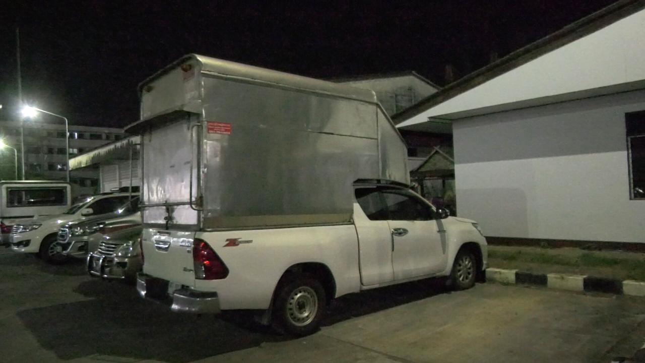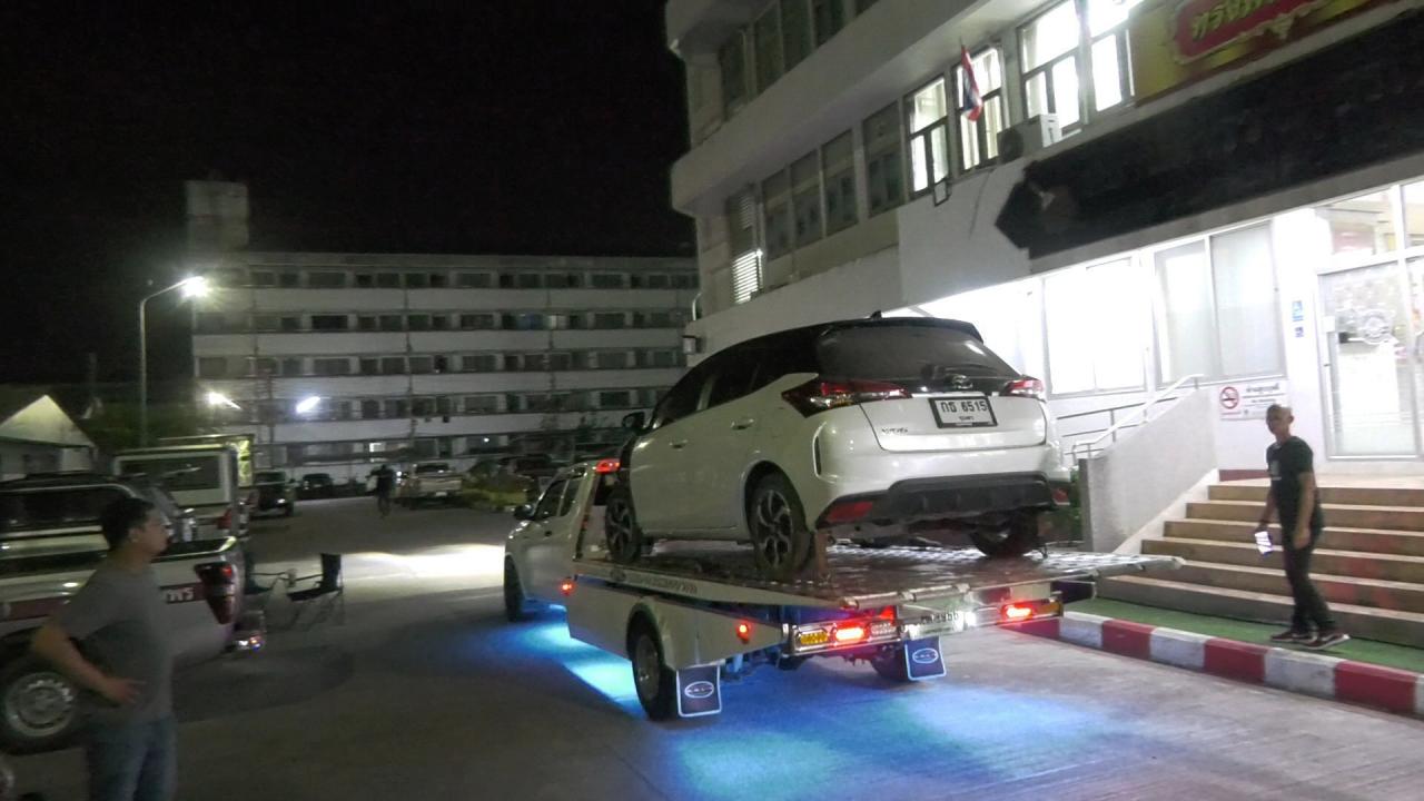 ต่อมาเวลา 22.00 น. ได้มีรถสไลด์บรรทุกรถเก๋งโตโยต้า ยาริส สีขาว ทะเบียน กธ 6515 ชุมพร ของนายจิรศักดิ์ หรือเอ็มผู้ตาย ที่นายเจนณรงค์ หรือเอ็ม ผู้ต้องหาใช้ขับหลบหนีหลังก่อเหตุฆ่าแล้วนำศพไปทิ้งในป่าละเมาะ ขับไปประสบอุบัติเหตุหลุดโค้งชนกับคอกวัวในพื้นที่ อ.หัวหิน จ.ประจวบคีรีขันธ์ จนกระจังหน้า และด้านท้ายรถเก๋งพังเสียหาย ก่อนจะถูกตำรวจตามไปจับกุมได้ มาเก็บไว้เป็นของกลางที่ สภ.เมืองชุมพร