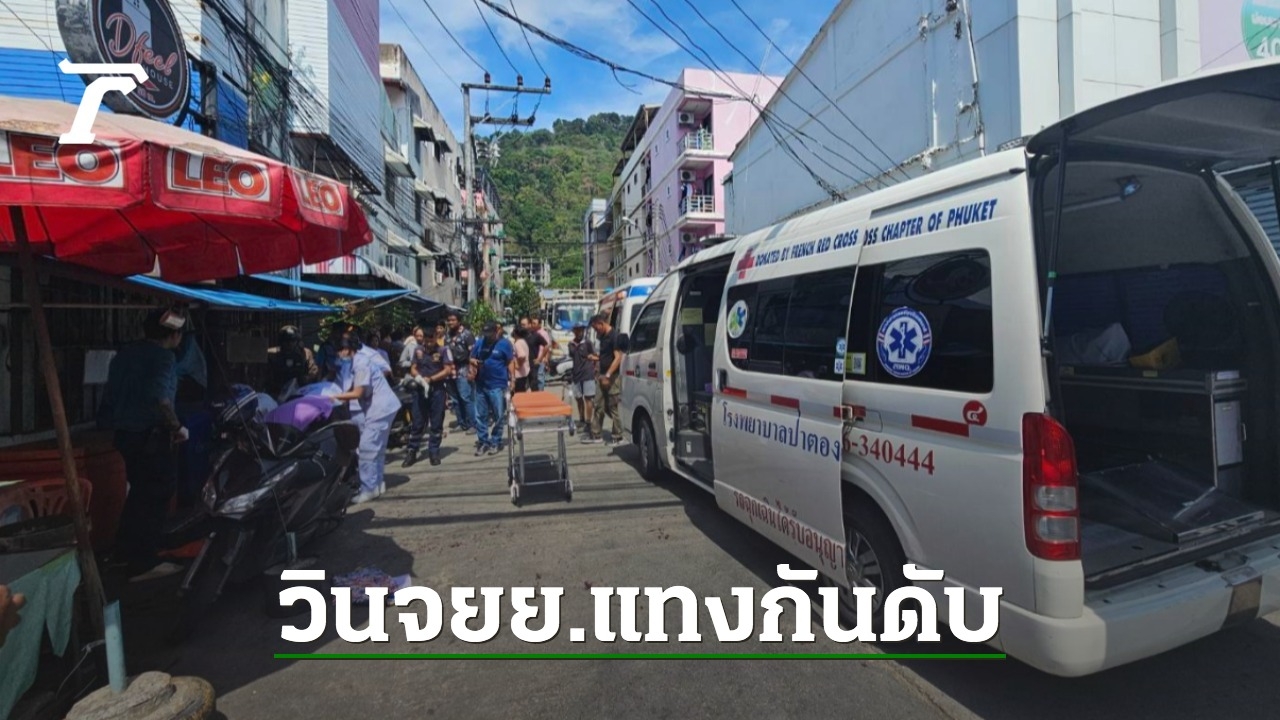 เกิดเหตุดวลมีดกลางวิน จยย. ที่ป่าตอง จ.ภูเก็ต ลุงวัย 61 ปี ชาวเพชรบุรีผลัดกันแทงกับหนุ่มพัทลุง ผลลุงโดนเข้าหน้าอก 3 แผล เสียชีวิต ส่วนคู่กรณีแค่บาดเจ็บขี่ จยย.ไป รพ.เอง เบื้องต้น พยานเห็นเหตุการณ์บอกมีการลัดคิวตัดหน้าแย่งรับผู้โดยสาร
