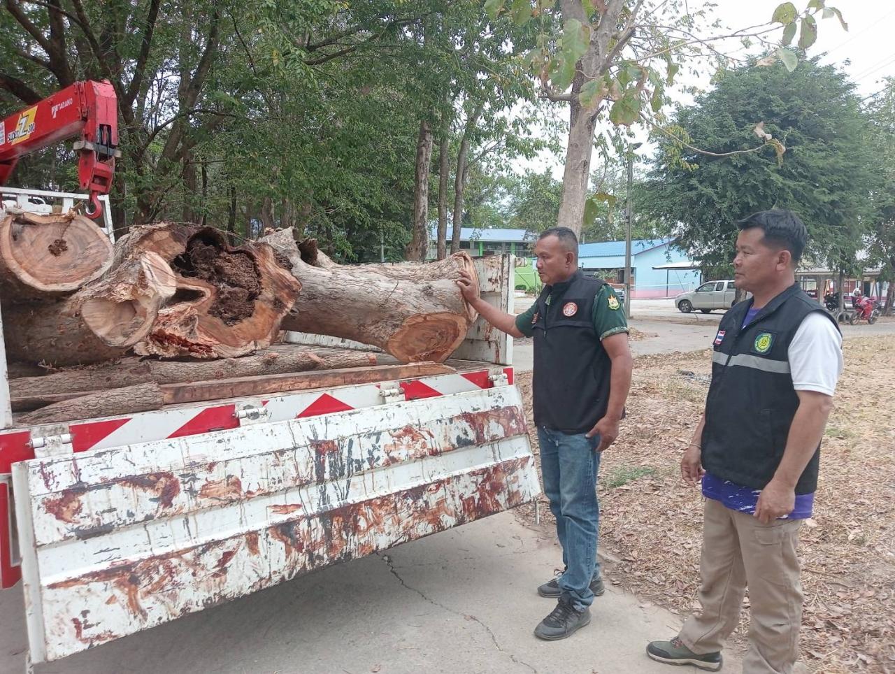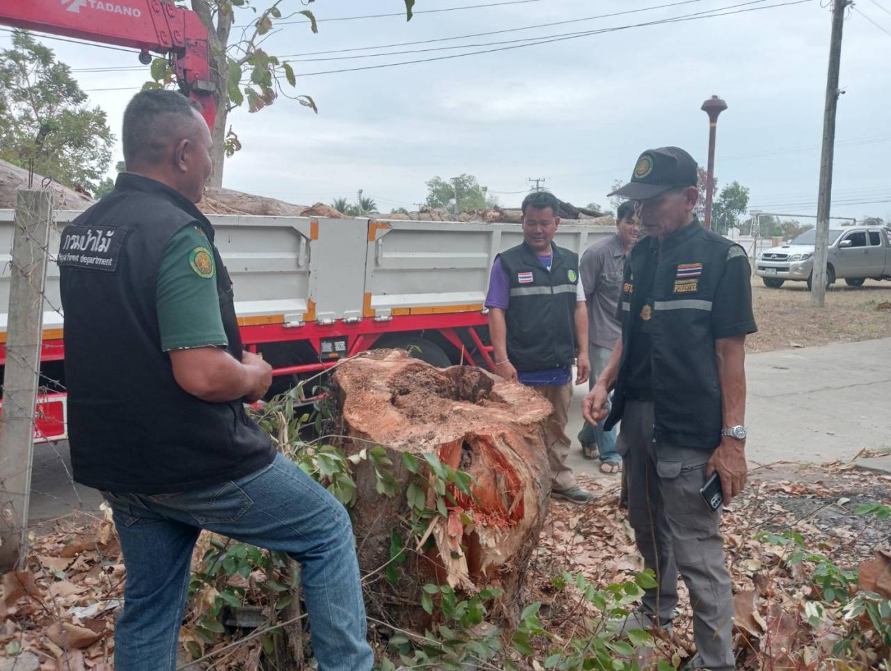 นายศุภชัย มณีกัน อายุ 58 ปี ชาวบ้านที่เห็นเหตุการณ์ เล่าว่า บ้านของตนอยู่ไม่ไกลกับจุดที่เกิดเหตุ ซึ่งช่วงเกิดเหตุเวลาประมาณ 02.30 น. สภาพอากาศหนาวเย็นมาก ชาวบ้านทุกคนคงนอนหลับอยู่ใต้ผ้าห่ม แต่ตนรู้สึกตัวตื่นขึ้นมาเพราะได้ยินเหมือนเสียงต้นไม้ใหญ่ล้มดังครืน ตามด้วยเสียงสุนัขเห่า จึงเอาไฟฉายมาส่องทางทิศทางที่ได้ยินเสียงดังกล่าว จากนั้นก็มองเห็นเงาตะคุ่มๆ ของคนร้ายไม่ทราบจำนวน วิ่งขึ้นรถกระบะสีขาว ไม่ทราบหมายเลขทะเบียน ก่อนที่รถกระบะคันนั้นจะขับออกไปอย่างรวดเร็ว ด้วยความสงสัยจึงได้เข้าตรวจสอบบริเวณนั้น พบว่าต้นพะยูงอายุกว่า 50 ปี ถูกแก๊งมอดไม้ตัดโค่นลง แต่ยังไม่ได้ตัดทอนออกไป จึงได้แจ้งให้ผู้อำนวยการโรงเรียนทราบเรื่อง