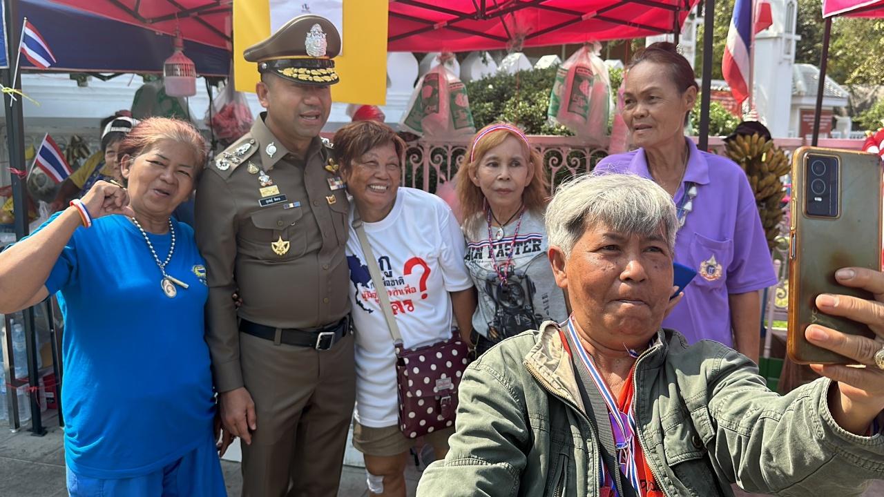 "บิ๊กโจ๊ก" เยี่ยมผู้ชุมนุมรอบทำเนียบรัฐบาล ขอความร่วมมือแกนนำเคลียร์เส้นทางจราจรเมื่อมีขบวน ได้รับเสียงตอบรับเป็นอย่างดี FC ทักทายขอเซลฟี่คึกคัก