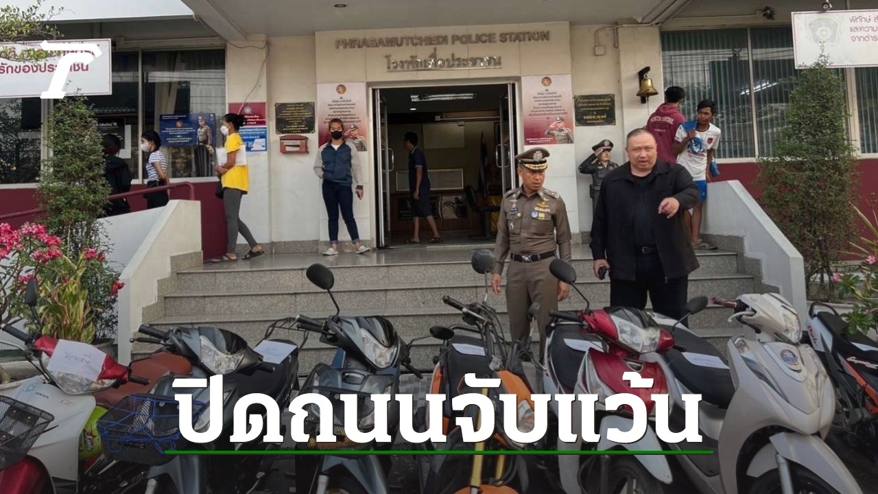 ตำรวจพระสมุทรเจดีย์ นำกำลังเข้าปิด ถ.สุขสวัสดิ์-ถ.ประชาอุทิศ สกัดจับเด็กแว้นนัดซิ่งประลองความเร็ว หลังสร้างความเดือดร้อน จนมี ปชช.จำนวนมากเข้าร้องเรียน สามารถยึด จยย. 49 คัน