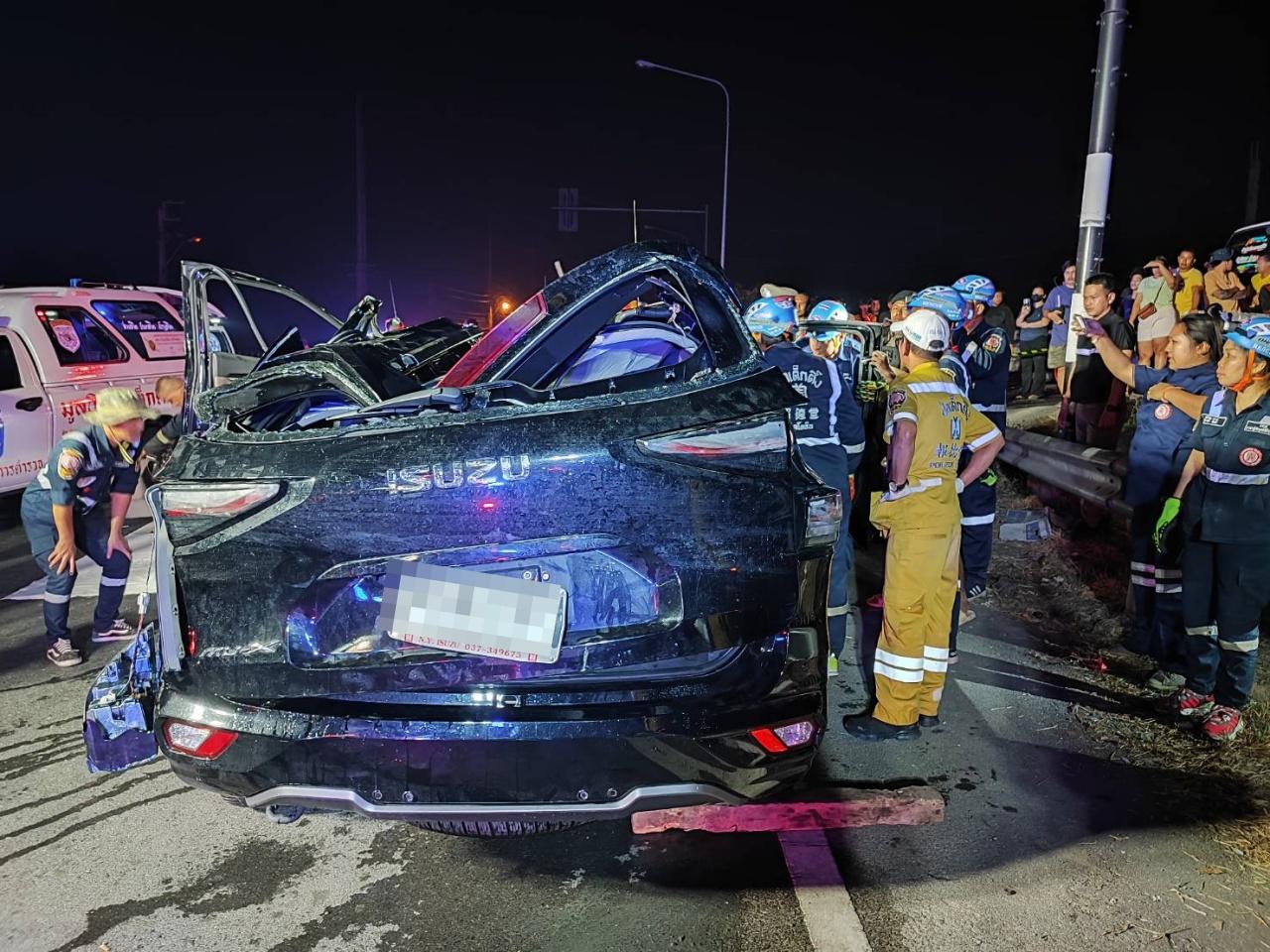 เศร้ารับวันวาเลนไทน์ ภรรยาตำรวจ สภ.คลองห้า กลับไม่ถึงบ้าน รถอีซูซุมิว-เอ็กซ์ เหินคอสะพานตกคลอง เสียชีวิต สามีเศร้าร้องไห้ พบที่เกิดเหตุมืดมาก ไฟส่องสว่างไม่ติด-ไม่มีการ์ดเรล ที่ผ่านมามักเกิดอุบัติเหตุอยู่บ่อยครั้ง