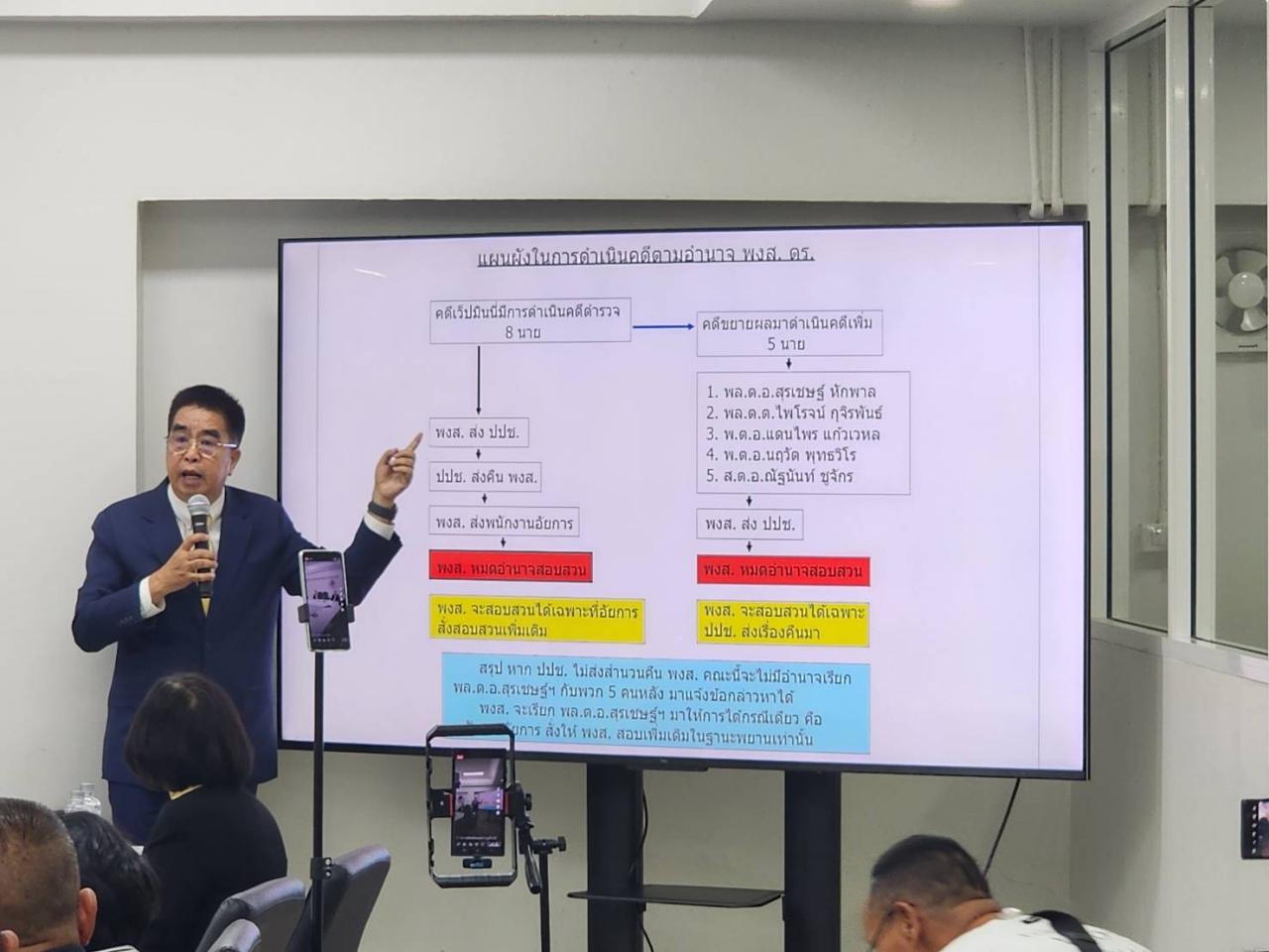 ต่อมาได้มีการขยายเส้นทางการเงิน และมีการส่งสำนวนไปยัง ป.ป.ช. แล้ว 5 ราย ประกอบด้วย 1. พล.ต.อ.สุรเชษฐ์ หักพาล รอง ผบ.ตร. 2. พล.ต.ต.ไพโรจน์ กุจิรพันธ์ 3. พ.ต.อ.แดนไพร แก้วเวหล 4. พ.ต.อ.นฤวัต พุทธวิโร 5. ส.ต.อ.ณัฐนันท์ ชูจักร ซึ่งตนเองก็ยืนยันว่าได้รับเงินมาจาก พล.ต.อ.สุรเชษฐ์ หักพาล จริง โดยโอนมาจาก พ.ต.ท.คริษฐ์ ปริยะเกตุ โอนเข้าบัญชีบุตรชายของตน เป็นค่าที่ปรึกษาและค่าใช้จ่ายในการทำงาน แต่เอกสารลับทางราชการเช่นนี้ไม่สามารถเปิดเผยได้ ซึ่งผิดตามความลับของราชการตำรวจ ข้อ 7 ที่ระบุว่า พนักงานสอบสวนจะต้องรักษาความลับของราชการ และความลับในการปฏิบัติหน้าที่