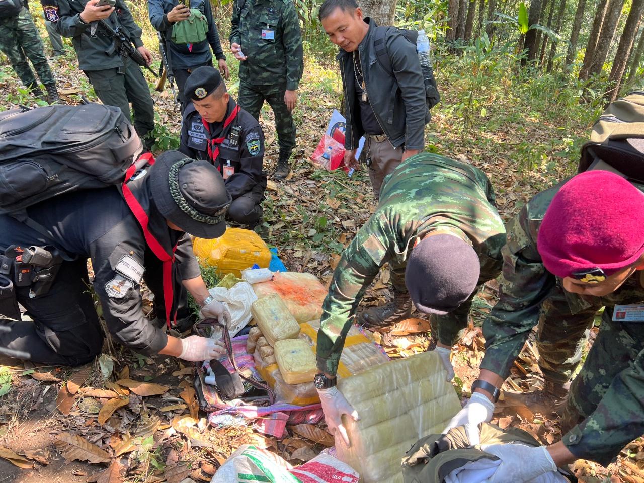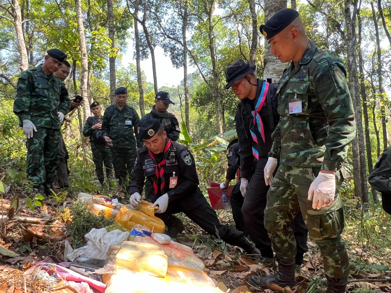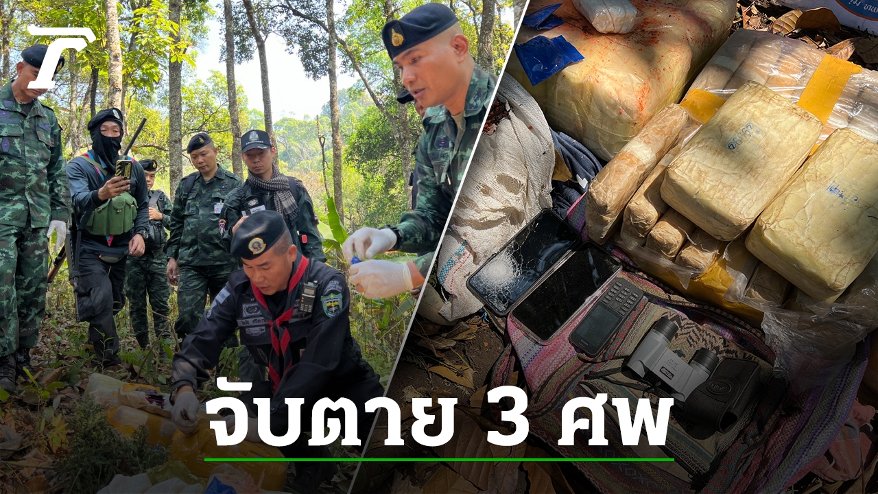 จากการตรวจสอบ พบกลุ่มขบวนการลำเลียงยาเสพติด เสียชีวิต จํานวน 3 ศพ พบกระสอบเป้ จํานวน 6 เป้