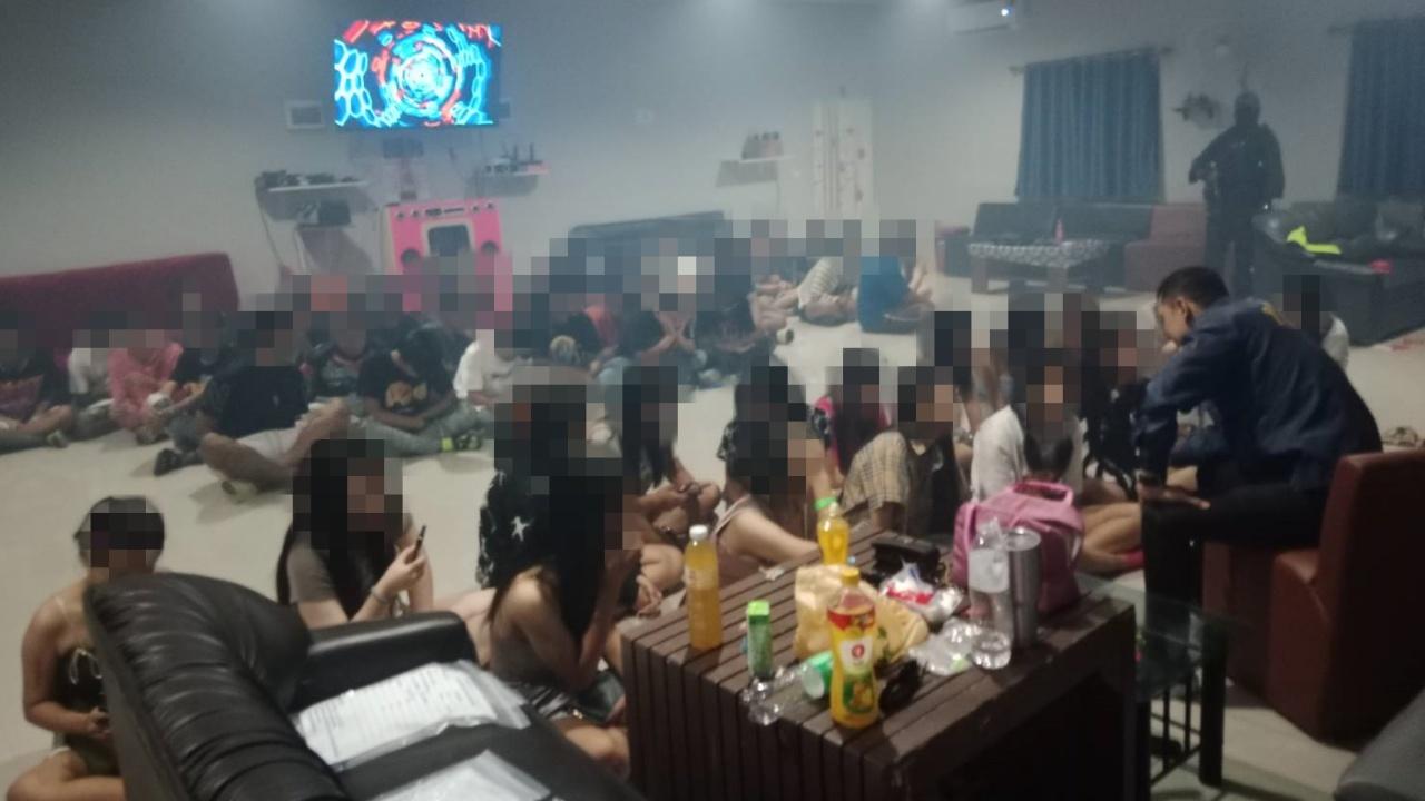 จากการตรวจสอบพบวัยรุ่นทั้งหมด 68 คน แบ่งเป็นชาย 39 คน และหญิง 29 คน พบอุปกรณ์การเสพและยาเสพติดหลายชนิด เช่น ยาบ้า, ยาอี, ยาไอซ์ และเคตามีนบรรจุในซองพลาสติกจำนวนมาก และอาวุธปืน