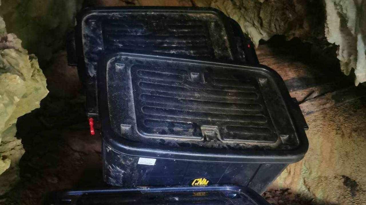 จากนั้น พ.ต.อ.ประภาส ได้นำกำลังบุกเข้าไปภายในถ้ำดังกล่าว ก่อนตะลึงเมื่อพบยาบ้าจำนวนหลายห่อซุกซ่อนในซอกหินภายในถ้ำ จำนวน 880,000 เม็ด มูลค่ากว่า 10 ล้านบาทซุกซ่อนในกล่องลังพลาสติกสีดำ 3 กล่อง และจนท.ยังเจออาวุธปืนลูกซองยาวจำนวน 1 กระบอก, อาวุธปืนลูกซองสั้น 1 กระบอก, อาวุธปืนยาวขนาด .22 จำนวน 1 กระบอก พร้อมกระสุนชนิดต่างๆ อีกจำนวนนับร้อยนัด ซุกซ่อนในซอกหินในถ้ำ