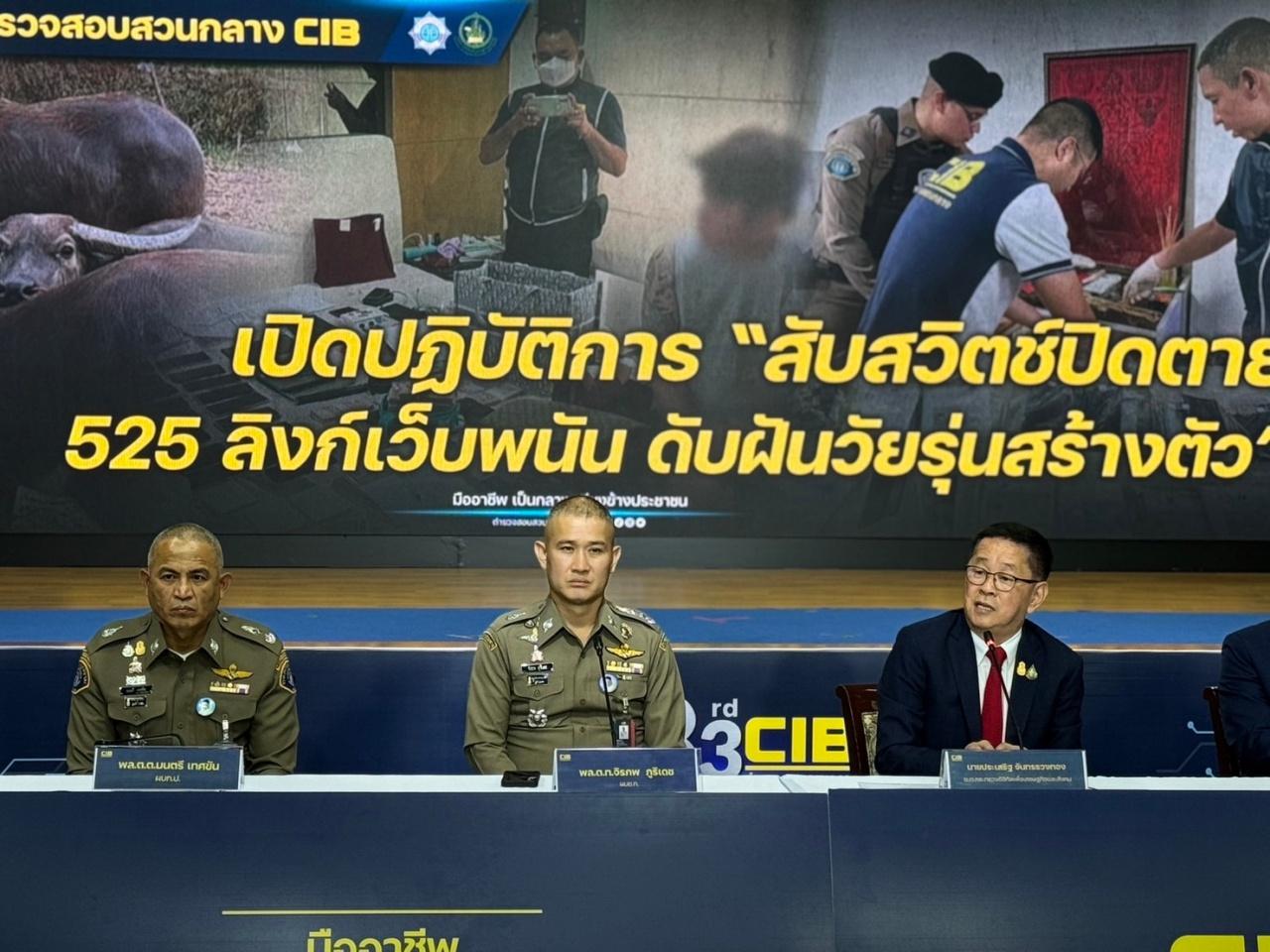 เมื่อเวลา 14.30 น. วันที่ 14 มี.ค. 2567 ที่ ห้องประชุมชั้น 2 กองบังคับการปราบปราม (บก.ป.) นายประเสริฐ จันทรรวงทอง รัฐมนตรีว่าการกระทรวงดิจิทัลเพื่อเศรษฐกิจและสังคม, พล.ต.ท.จิรภพ ภูริเดช ผบช.ก, พล.ต.ต.มนตรี เทศขัน ผบก.ป., พล.ต.ต.อธิป พงษ์ศิวาภัย ผบก.ปอท., พ.ต.อ.เอนก เตาสุภาพ, พ.ต.อ.เผด็จ งามละม่อม รอง ผบก.ป. และนายกมลสิษฐ์ วงศ์บุตรน้อย ผู้ช่วยเลขาธิการคณะกรรมการป้องกันและปราบปรามการฟอกเงิน ร่วมกันแถลงข่าวผลการเปิดปฏิบัติการ "สับสวิตช์ปิดตาย 525 ดับฝันลิงก์เว็บพนัน วัยรุ่นสร้างตัว" จับกุมผู้ต้องหา 44 ราย แบ่งเป็นตัวการ 20 ราย และบัญชีม้า 24 ราย