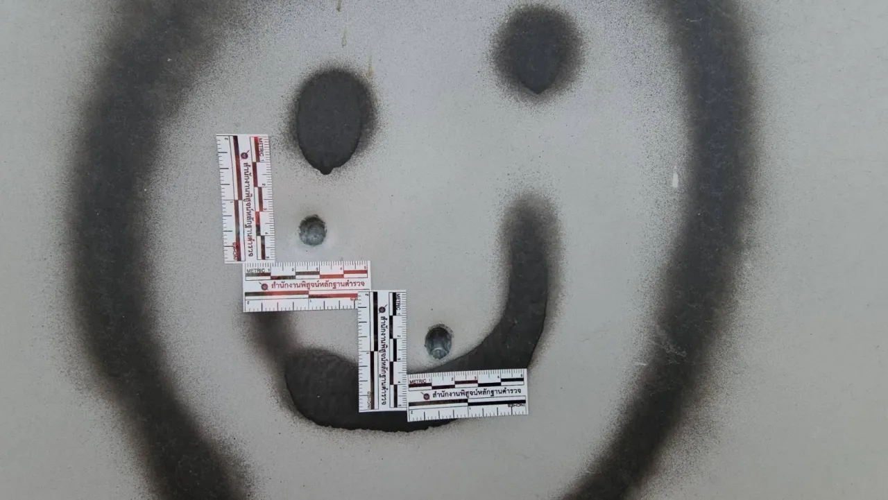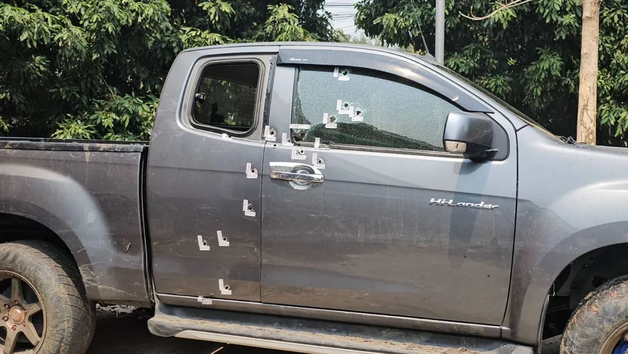 จากการตรวจสอบรถยนต์กระบะผู้บาดเจ็บ พบมีร่องรอยรูกระสุนเข้าที่บริเวณประตู และแค็บฝั่งขวา พบปลอกกระสุนตกอยู่ บริเวณสะพานข้ามคูน้ำไปร้านกาแฟ จำนวน 6 ปลอก เจ้าหน้าที่จึงรวบรวมไว้เป็นหลักฐาน ส่วนคนร้ายหลบหนีไปได้
