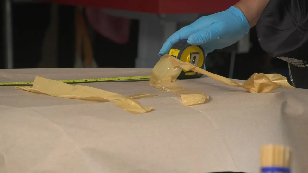 เจ้าหน้าที่ตำรวจกองพิสูจน์หลักฐานได้เข้าไปตรวจเก็บหลักฐานภายในบ้าน เช่น ผ้าห่ม เสื้อผ้า และคราบต่างๆ ภายในห้องนอน ห้องน้ำ บางจุดเจ้าหน้าที่ได้นำตัว "เจ๊อ้วน" ไปยืนดูการตรวจเก็บหลักฐานด้วย โดยมีหลักฐานสำคัญได้แก่ม้วนสก๊อตเทปสีน้ำตาลซึ่งเป็นชนิดเดียวกันกับที่ใช้ห่อพันศีรษะและใบหน้า "โกหมาส" โดยเจ้าหน้าที่ใช้เวลาตรวจเก็บหลักฐานนานประมาณ 1 ชั่วโมง