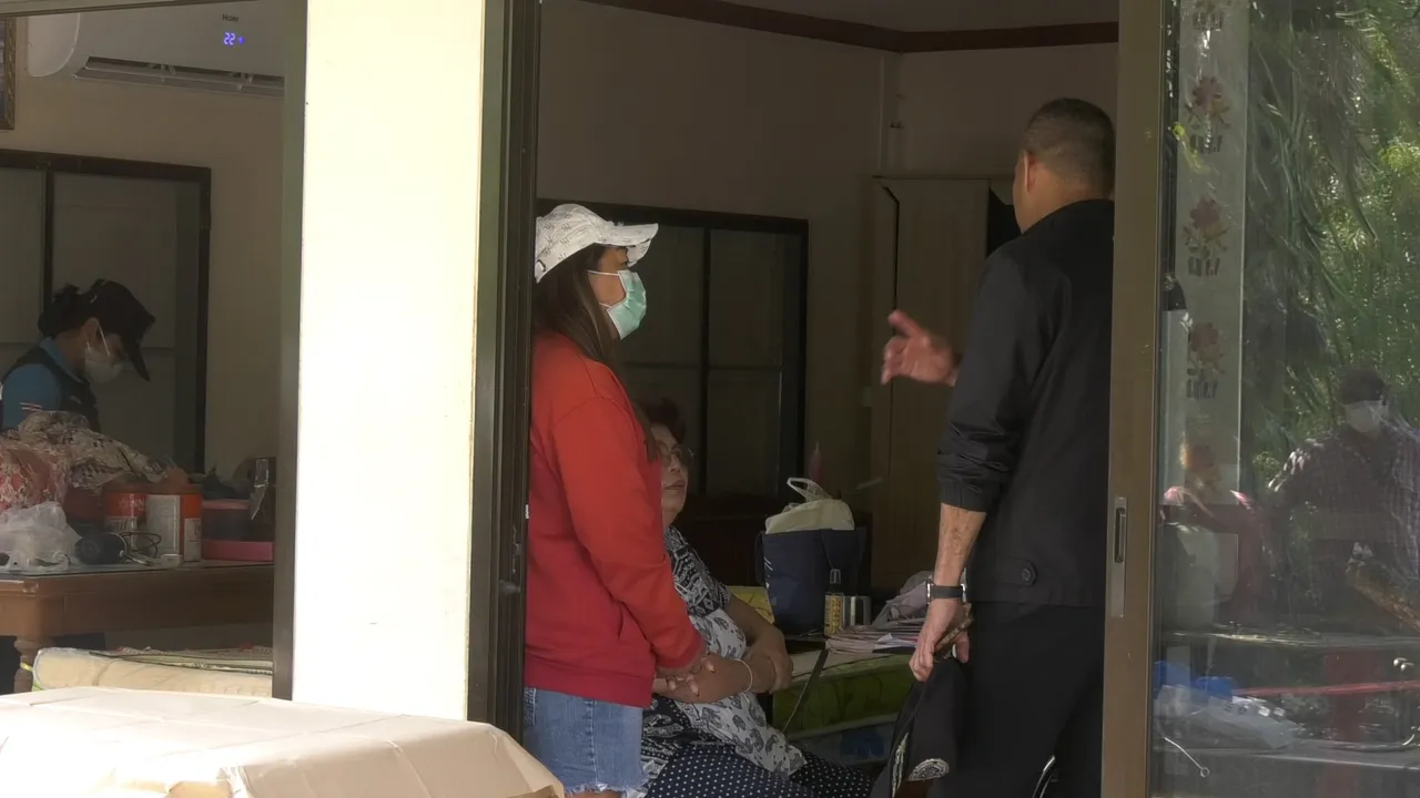 โดยที่บ้านหลังดังกล่าวอยู่ห่างจาก สภ.นาสัก 5 กิโลเมตร พล.ต.ต.นภันต์วุฒิ เลี่ยมสงวน ผบก.กองบังคับการสืบสวน ภ.8 พร้อมชุดสืบสวน และตำรวจพิสูจน์หลักฐาน ได้พบกับ นางวันเพ็ญ ธัญญาพงศ์พานิช อายุ 62 ปี หรือเจ๊อ้วน นั่งอยู่ในบ้าน ซึ่งเจ้าหน้าที่ได้แสดงหมายค้นศาลจังหวัดหลังสวน โดยเจ๊อ้วนให้ความร่วมมือโดยดี ด้วยสีหน้าเรียบเฉย โดยมีนายสำราญ สมหวัง พี่ชาย "โกหมาส" อยู่ที่บ้านหลังดังกล่าวด้วย เจ้าหน้าที่ได้ใช้เชือกกั้นบริเวณบ้านห้ามไม่ให้ผู้ไม่เกี่ยวข้องเข้าไป