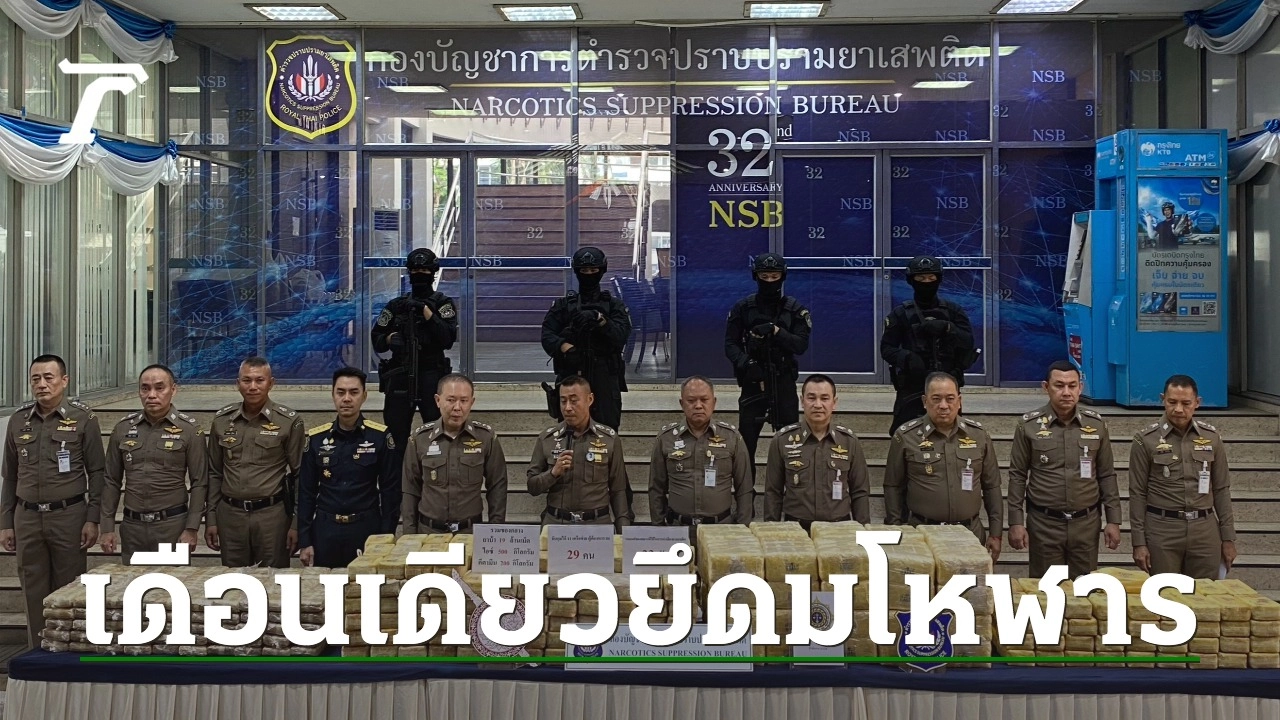 เมื่อเวลา 10.00 น. วันที่ 5 เม.ย. 67 พล.ต.ท.สำราญ นวลมา ผู้ช่วย ผบ.ตร. และ รอง ผอ.ศอ.ปส.ตร. พร้อมด้วย พล.ต.ท.คีรีศักดิ์ ตันตินวะชัย ผบช.ปส., พล.ต.ต.สมเกียรติ วัฒนพรมงคล, พล.ต.ต.สมบูรณ์ เทียนขาว, พล.ต.ต.ออมสิน ตรารุ่งเรือง, พล.ต.ต.พลัฏฐ์ วิเศษสิงห์ รอง ผบช.ปส., พล.ต.ต.พรพิทักษ์ รู้ยืนยง รอง ผบช.ฯ, พล.ต.ต.นพสิทธิ์ มิตรภักดี ผบก.ปส.1, พล.ต.ต.ธนรัชน์ สอนกล้า ผบก.ปส.2, พล.ต.ต.อดิศ เจริญสวัสดิ์ ผบก.ปส.3, พล.ต.ต.พรศักดิ์ สุรสิทธิ์ ผบก.ปส.4, พล.ต.ต.อิทธิพล จันทร์ศรีบุตร ผบก.ขส. และพล.ต.ต.วิทัศน์ บริรักษ์ ผบก.สกส. ร่วมแถลงผลการจับกุมเครือข่ายยาเสพติดรายสำคัญในห้วงวันที่ 11-28 มี.ค. 67 จำนวน 11 เครือข่าย ผู้ต้องหารวม 29 คน ตรวจยึดยาบ้ากว่า 19 ล้านเม็ด, ไอซ์ 500 กก., และเคตามีน 200 กก. พร้อมของกลางรถที่ใช้ก่อเหตุ 23 คัน