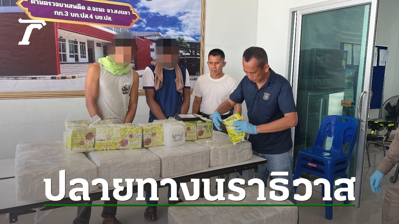 รวบคาด่าน 2 พ่อลูกบุญธรรม ลอบขนไอซ์ 470 กก. มูลค่าหลายร้อยล้านบาท ซุกรถบรรทุก 10 ล้อ-ใช้ถังน้ำเหล็กแบนบดบังตบตา จนท. สอบสวนรับยามาจากชายแดนเมียนมา-ขนส่ง จ.นราธิวาส