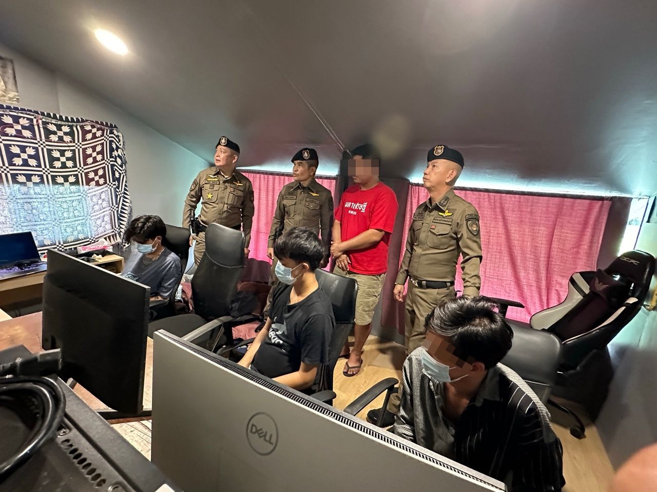 เบื้องต้นทางเจ้าหน้าที่แจ้งข้อหา “ร่วมกันจัดให้มีการเล่นพนันออนไลน์ หรือทําอุบายล่อ ช่วยประกาศโฆษณาหรือชักชวน โดยทางตรงหรือทางอ้อมให้ผู้อื่นเข้าเล่นหรือเข้าพนันในการเล่นพนันออนไลน์ ทางสื่ออิเล็กทรอนิกส์โดยไม่ได้รับอนุญาต” ก่อนนำตัวพร้อมของกลางส่งพนักงานสอบสวน บก.สอท.4 ดำเนินคดีตามกฎหมายต่อไป.
