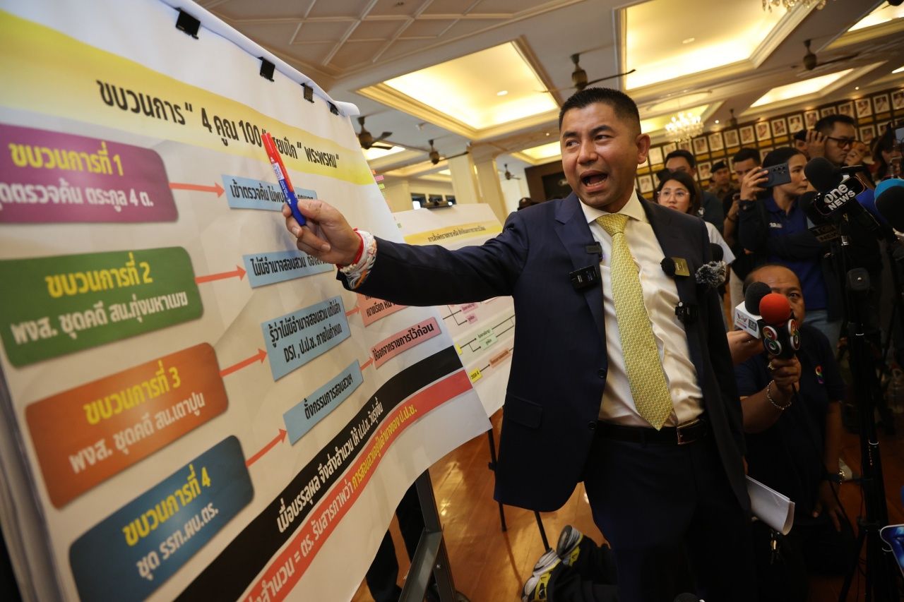 “มีขบวนการ “4 คูณ 100” สยบปีก “พระพรหม” ซึ่งขบวนการนี้เป็นพวกเสพติดอำนาจ อยากมีอำนาจ ประพฤติชั่ว โดยแบ่งงานกันทำ ดังนี้