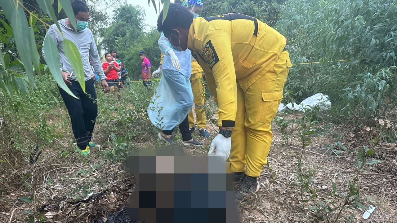 ผงะ พบหญิงวัย 40 ถูกฆ่าโหด นำยางรถรัดคอ ล็อกกุญแจมือไพล่หลัง นำศพหมกป่าละเมาะริมแม่น้ำชี พร้อมนำกิ่งไม้แห้งปกคลุมร่างในสภาพขึ้นอืดแล้ว ตำรวจคาดเป็นการฆาตกรรมอำพรางจากนอกพื้นที่ก่อนนำมาทิ้งไว้