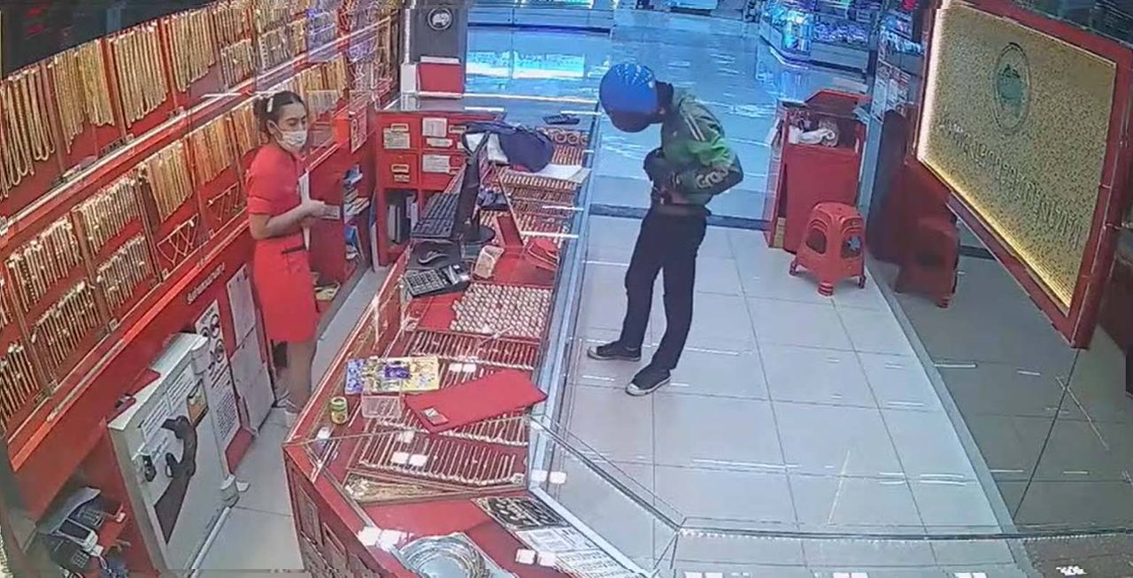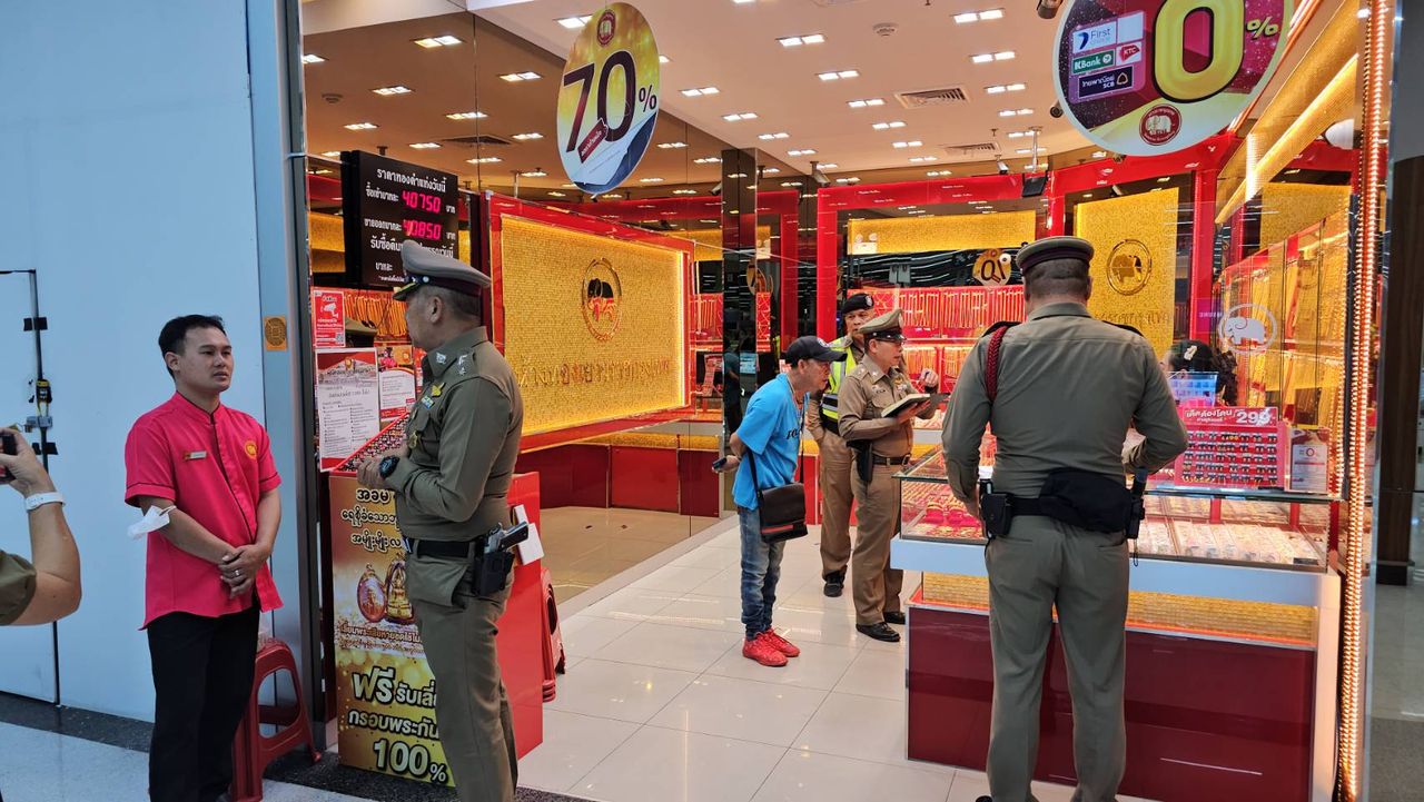 จากการสอบถามพนักงานชาย เล่าเบื้องต้นว่า ในช่วงเกิดเหตุเป็นช่วงพักกลางวัน ตนที่เป็นพนักงานชายในร้าน ทำหน้าที่อัดกรอบพระ ได้ลงไปกินข้าวที่ชั้นล่างของห้างสรรพสินค้า จึงเหลือเพียงแค่พนักงานหญิง 2 คน อยู่หน้าร้าน ซึ่งจากการบอกเล่าของเพื่อนร่วมงาน และภาพตามกล้องวงจรปิด ทราบว่าตอนนั้นมีชายคนหนึ่ง ลักษณะการแต่งกายใส่ชุดสีเขียว คล้ายกับไรเดอร์ส่งอาหารของบริษัทแห่งหนึ่ง สวมหมวกกันน็อก เดินเข้ามาแล้วก็รีบถกชายเสื้อขึ้นให้เห็นวัตถุบางอย่างที่เหน็บอยู่ที่เอว พร้อมกับพูดว่า กูมาปล้นทอง เอาเส้นใหญ่ เส้นเล็กไม่เอา