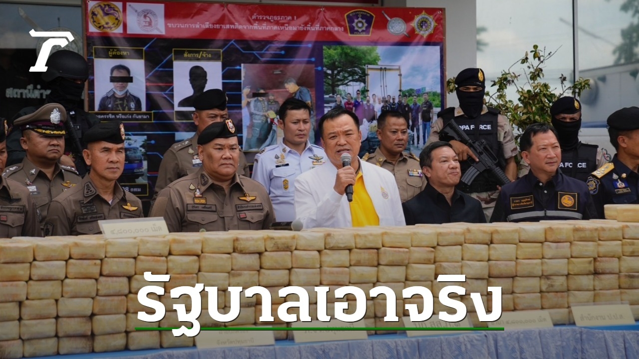 "มท.1" ร่วมตำรวจภูธรภาค 1 แถลงข่าวจับยาบ้า 4.8 ล้านเม็ด มูลค่าประมาณ 140 ล้านบาท ซุกรถหกล้อลักลอบลำเลียงส่งลูกค้าใน จ.ปทุมธานี พร้อมรวบผู้ต้องหา 1 ราย "อนุทิน" ยัน รบ.เอาจริงปราบยานรก ฝากเตือนสติคิดถึงครอบครัว ก่อนทำผิดกฎหมาย