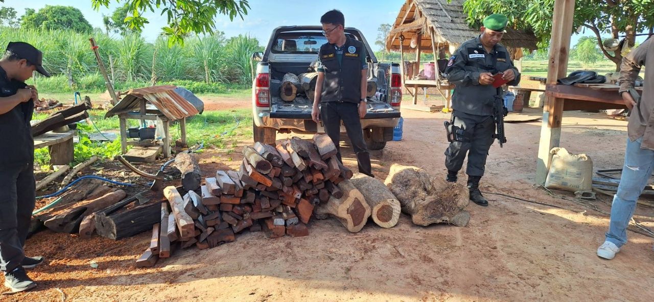 ตำรวจ ปทส.สนธิกำลังเจ้าหน้าที่หลายหน่วยงาน บุกยึดไม้พะยูงซุกกระท่อมกลางนาและในสระน้ำ ได้ของกลาง 100 กว่าท่อน เตรียมส่งขายนายทุน มีมูลค่าสูงนับล้านบาท ส่วนผู้ต้องสงสัยไม่อยู่ในที่เกิดเหตุ ทิ้งพี่สะใภ้ไว้รับหน้าแทน