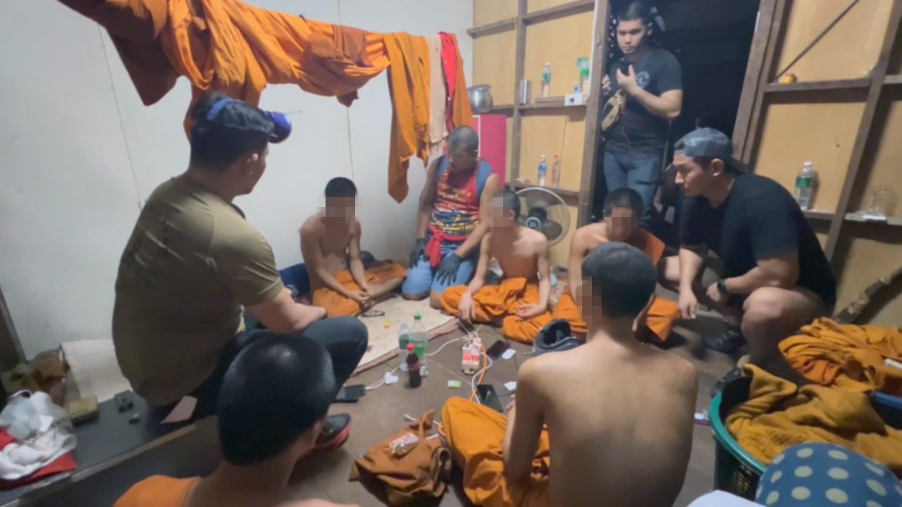 พบชายวัยรุ่นชื่อนายเอ (นามสมมติ) อายุ 20 ปี ขี่รถจักรยานยนต์เข้าไปในวัด และจอดที่หน้ากุฏิไม้ชั้นเดียวยกพื้นสูง เดินขึ้นไปในกุฏิ จึงนำกำลังเข้าตรวจค้น พบสามเณร 8 รูป อายุระหว่าง 16-19 ปี และนายเอ นั่งล้อมวงเสพยาบ้าอยู่ในกุฏิ