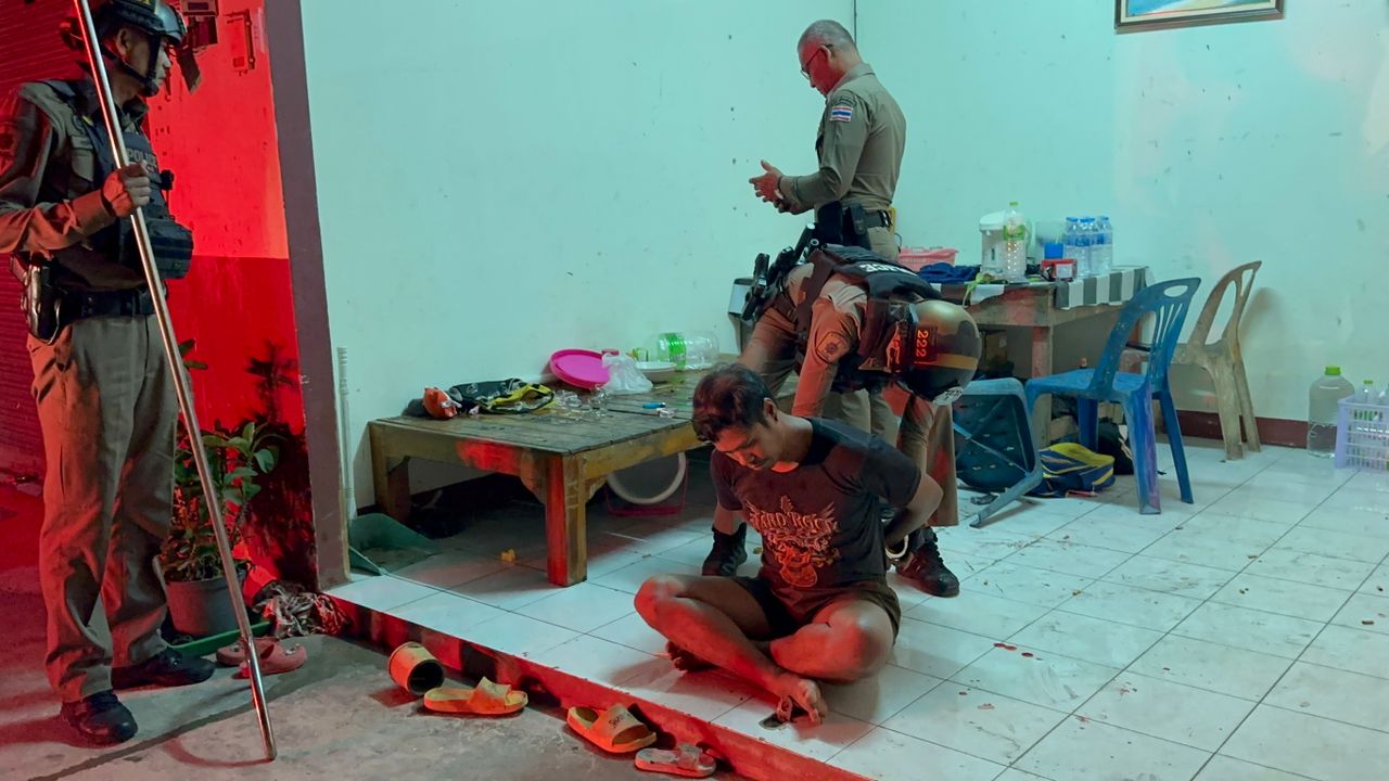 เมื่อเวลา 21.50 น. วันที่ 23 มิ.ย. 67 ร.ต.อ.สรวิศ รักจุ้ย รอง สวป.สภ.เมืองพัทลุง ควบคุมตัว นายพลวัฒน์ ตุ๊กสุวรรณ์ อายุ 27 ปี ได้ที่ห้องแถวบ้านเช่าเลขที่ 112/1 หมู่ที่ 5 ตำบลเขาเจียก อำเภอเมือง หลังก่อเหตุใช้มีดแทง นายประจวบ ทองขาว อายุ 52 ปี ซึ่งเป็นพ่อเลี้ยง มีบาดแผลบริเวณแก้มข้างขวา และศีรษะ จำนวน 3 แผล ได้รับบาดเจ็บ เจ้าหน้าที่กู้ภัยต้องเร่งนำตัวส่ง รพ.พัทลุง