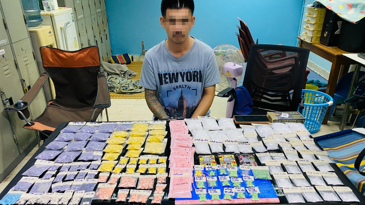 เวลา 22.00 น. (27 มิ.ย.67) พ.ต.อ.นาวิน สินธุรัตน์ ผกก.สภ.บางละมุง พ.ต.อ.นิทัศน์ แหวนประดับ ผกก.กก.ปพ.บก.ภ.2 พร้อมด้วย ตำรวจชุดปราบปรามยาเสพติด สภ.บางละมุง และตำรวจชุดสืบสวนกองกำกับการสืบสวนภาค 2 ได้ร่วมกันจับกุม นายสิทธิชัย หรือแบงค์ ทรัพย์สวัสดิ์ อายุ 30 ปี ทำหน้าที่นำ ยาเสพติดประเภทต่างๆ ซึ่งเป็นที่นิยมใช้กันในหมู่วัยรุ่นและนักเที่ยว ไปวางหรือ โยนตามจุดต่างๆ (ภาษาตำรวจเรียกกันว่า เด็กสโตร์ หรือเด็กเก็บของ) จากนั้นจะมีเอเย่นต์มารับแล้วนำไปขายในสถานบันเทิงในเขตเมืองพัทยา และพื้นที่ใกล้เคียง โดยตำรวจสามารถยึดของกลาง ยาเสพติดหลายประเภท โดยมี ยาไอซ์ 710 กรัม, ยาเค 495 กรัม, ยาแฮปปี้ไฟว์ 115 เม็ด, ยาอี 2,943 เม็ด, ยาแฮปปี้ วอเตอร์ 20 ซอง