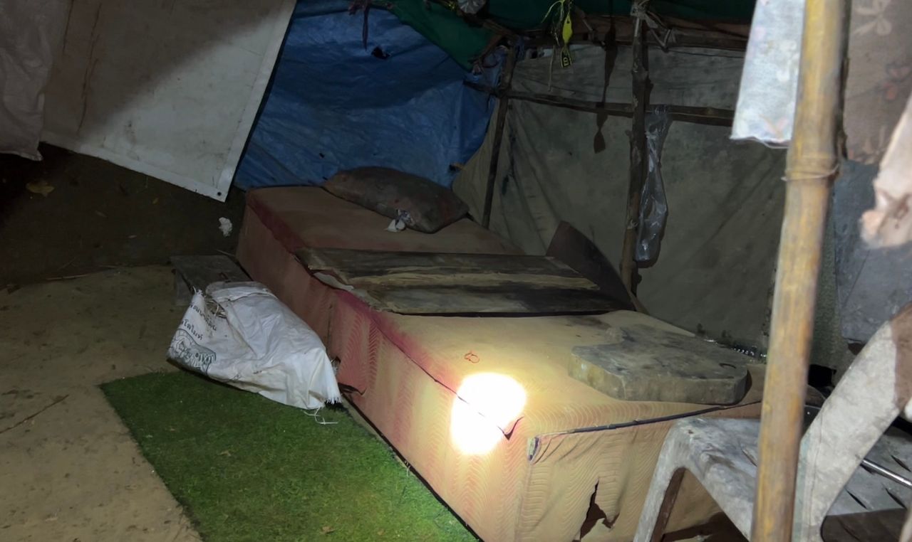 ต่อมาเจ้าหน้าที่ฯ เดินเท้าเข้าไปตรวจสอบภายในขนำเพิงพักของผู้ตายกลางสวนยางพารา ห่างจากบ้านพบศพประมาณ 200 เมตร บนฟูกที่นอนพบเขียงไม้ใหญ่ 1 อัน บนเขียงพบยาบ้าบรรจุใส่ถุงพลาสติก จำนวน 5 เม็ด อุปกรณ์เสพยา 1 ชิ้น ใกล้กันพบกระเป๋าสะพายข้าง 1 ใบ ซึ่งเป็นของผู้ตายแขวนอยู่ภายในเพิงพัก ตรวจสอบภายในพบยาบ้าจำนวนประมาณ 40-50 เม็ดบรรจุใส่กระปุกพลาสติกยาว และยังพบเศษกระดาษฟอยล์ที่ใช้สำหรับเสพยาบ้าตกอยู่เกลื่อนบริเวณเพิงพัก เจ้าหน้าที่ฯ จึงนำเก็บไว้เป็นหลักฐานเพื่อตรวจสอบต่อไป