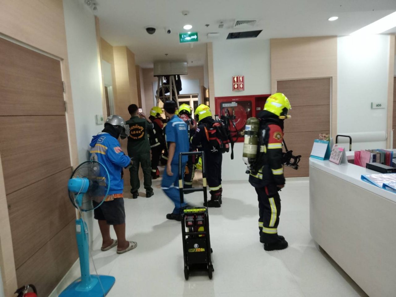 จากการตรวจสอบเบื้องต้นพบว่าจุดเกิดเหตุอยู่บริเวณใต้ฝ้าเพดานชั้นที่ 6 เกิดไฟฟ้าลัดวงจรที่มอเตอร์พัดลมคอยล์เย็นของระบบปรับอากาศ เจ้าหน้าที่จึงแก้ไขเบื้องต้นโดยการตัดกระแสไฟบริเวณจุดดังกล่าวเป็นที่เรียบร้อย โดยไม่มีผู้ได้รับบาดเจ็บหรือเสียชีวิตแต่อย่างใด