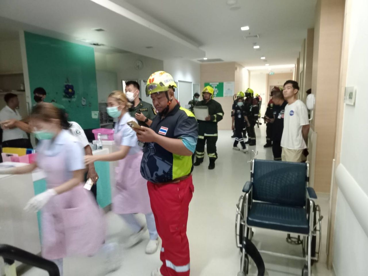 ที่เกิดเหตุอยู่ที่อาคารหอศัลยกรรม สูง 9 ชั้น พบมีกลุ่มควันฟุ้งกระจายภายในอาคาร โดยกลุ่มควันพวยพุ่งมาจากชั้น 5 กับชั้น 6 เจ้าหน้าที่จึงรีบลำเลียงผู้ป่วยจากชั้น 6 จำนวน 8 ราย และชั้น 5 อีก 11 รายในอาคารรวมที่นอนพักรักษาตัวอยู่ลงไปยังชั้นล่างเพื่อความปลอดภัย
