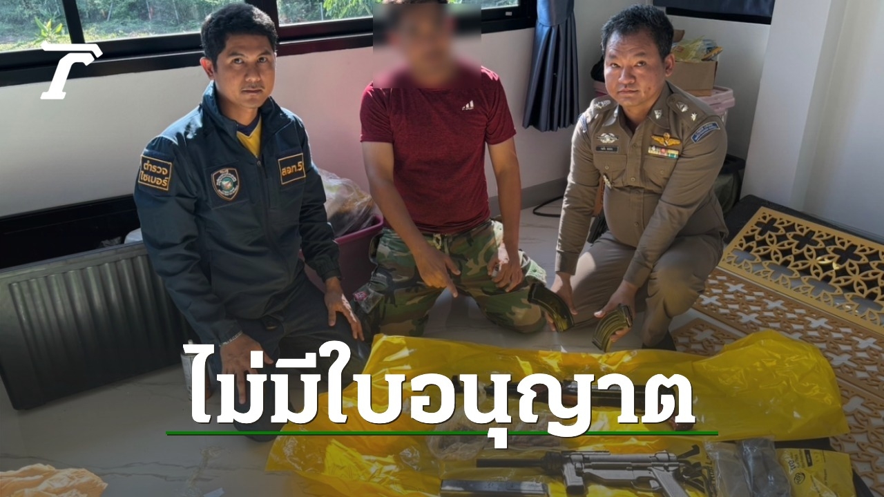 ตำรวจไซเบอร์ รวบหนุ่มสงขลา สะสมปืนเถื่อน ไม่มีใบอนุญาต ตรวจยึดของกลางหลายรายการ มีทั้งปืน AK-47 ปืนกลมือ M3 สารภาพทยอยซื้อมาเก็บสะสมด้วยความชอบ