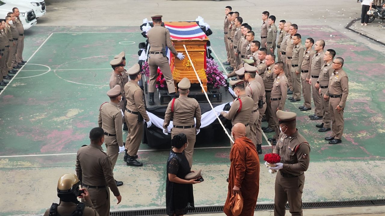 และในวันพรุ่งนี้ (15 ก.ค. 67) เวลา 09.30 น. พล.ต.อ.ธนา ชูวงศ์ รอง ผบ.ตร จะเดินทางมาร่วมพิธีสูตรถอนจากศาลาประสงค์วัฒนา เพื่อเชิญร่าง ส.ต.ท.ศรัณยู สิงห์คำ หรือหมู่โจ กลับบ้านไปบำเพ็ญกุศลที่บ้านเกิด และเวลา 10.30 น. ก็จะมีการเคลื่อนศพไปตั้งบำเพ็ญกุศลศพที่วัดห้วยปู ตำบลท่าตอน อำเภอแม่อาย ซึ่งเป็นบ้านเกิดของผู้ตาย ก่อนจะมีพิธีพระราชเพลิงศพในวันที่ 18 ก.ค. 67