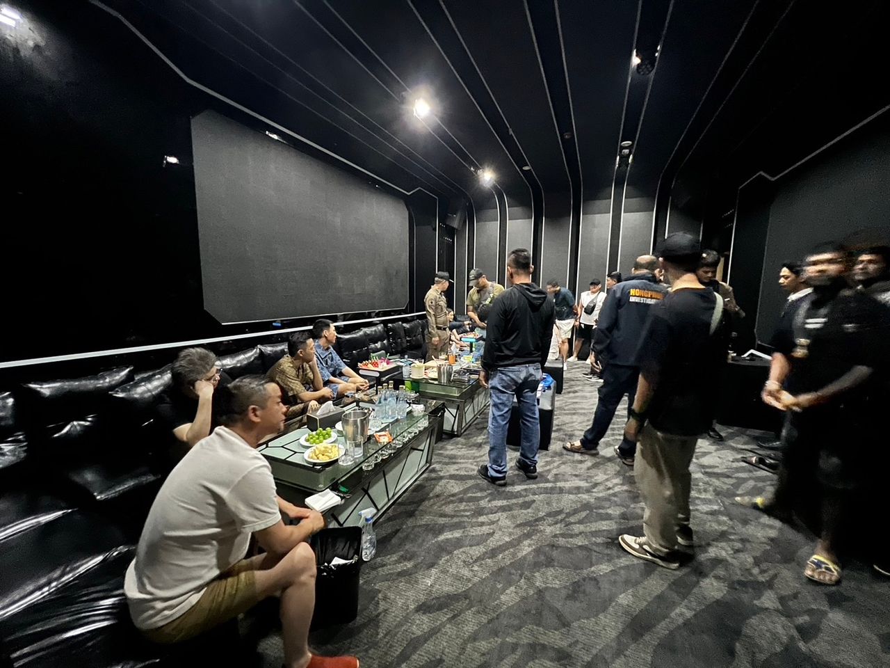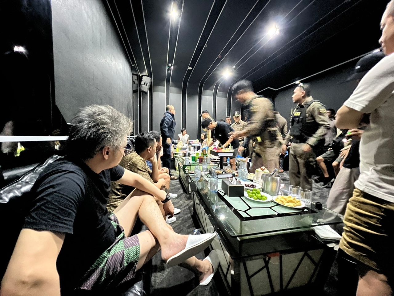 โดยเจ้าหน้าที่ได้สั่งให้ยุติกิจกรรมทั้งหมด สั่งให้ปิดเพลงแล้วเปิดไฟ จากการตรวจสอบพบยาเสพติด ประเภทยาเคตามีน วางอยู่ในถาดไม้บนโต๊ะ และ ในซองใส จำนวนมาก โดยมี นายหยาง ดาชิน (MR.YANG DAQIN) สัญชาติจีน อายุ 42 ปี รับเป็นเจ้าของยาเสพติดทั้งหมด นอกจากนี้ได้นำกำลังขึ้นไปตรวจสอบ ที่ชั้น 2, 3, 4 บางห้องไม่สามารถเข้าตรวจสอบได้ จึงได้ประสานผู้ดูแลเปิดให้ ตรวจสอบไม่พบสิ่งผิดกฎหมายใด หรือการลักลอบเล่นการพนันตามที่ถูกร้องเรียน