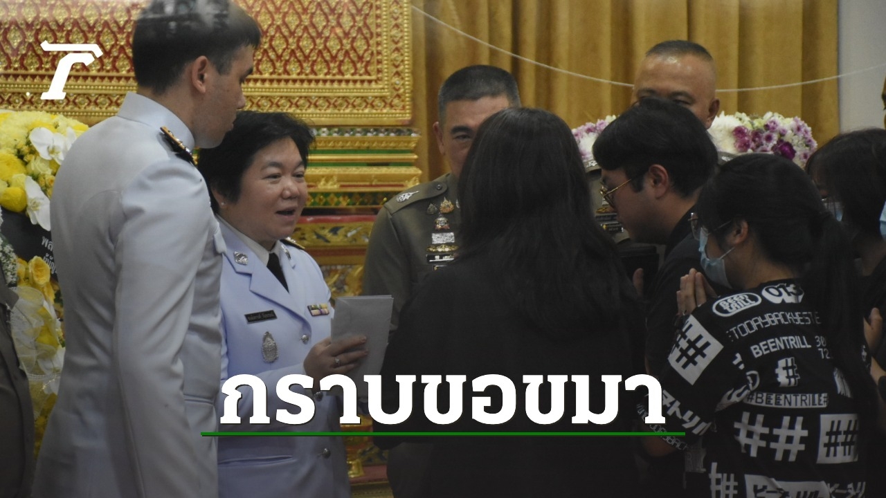 ต่อมาในเวลา 16.00 น. พล.ต.อ.ต่อศักดิ์ สุขวิมล ผบ.ตร. พร้อมภรรยาได้เดินทางมาพิธีรดน้ำศพ และภายหลังจากเข้าแสดงความเคารพศพได้เดินทางกลับในทันที