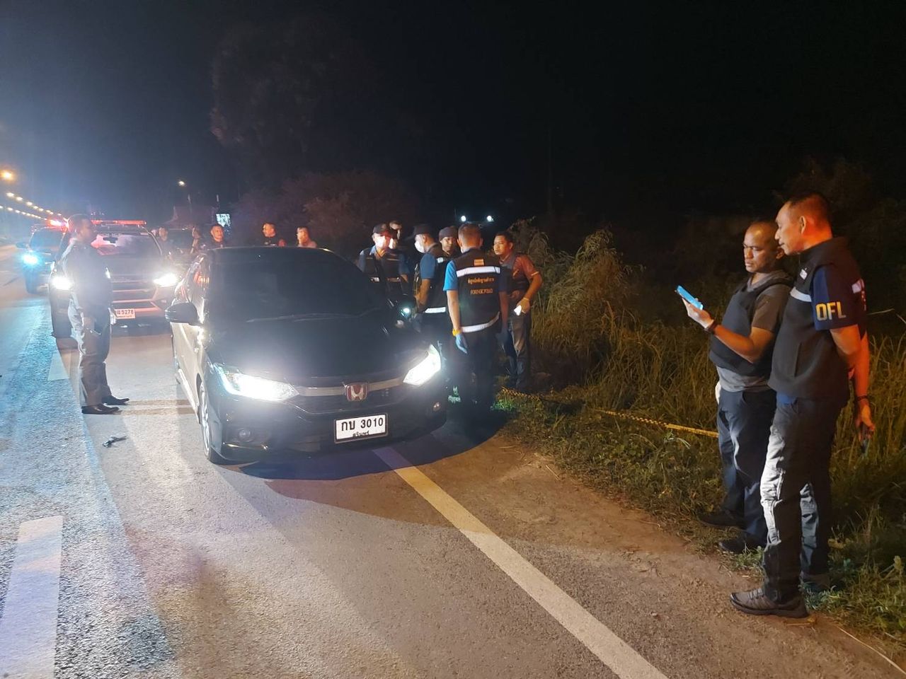 ตำรวจตู้ยามพิณทอง ได้สกัดรถให้จอดสุดท้ายยอมจอดรถนิ่งติดเครื่อง ตำรวจได้เรียกให้คนที่อยู่ในรถลงจากรถ แต่ไม่ได้รับคำตอบ ประมาณ 1 นาที ตำรวจได้ยินเสียงปืนดังมาจากภายในรถเก๋ง 1 นัด จึงเข้าไปตรวจสอบพบเป็นนายปฐพี สวมเสื้อเชิ้ต ใส่กางเกงขาสั้น นั่งอยู่เบาะคนขับ ถูกยิงด้วยอาวุธปืนลูกซองยาวเข้าบริเวณหน้าอกซ้าย กระสุนทะลุกระจกประตูด้านหลังขวา ส่วนสภาพศพมีเข็มขัดนิรภัยคล้องหน้าอกลักษณะพยุงตัวเอาไว้