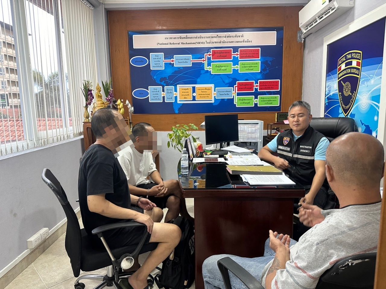 นายจิน ฉุย อายุ 43 ปี (ไม่เคยมาเมืองไทย) และนายเฉิน เหว่ย อายุ 44 ปี (เคยมาเมืองไทยเมื่อ 7 ปีก่อน) ให้การว่า ได้หลบหนีมาจากประเทศจีน เนื่องจากถูกออกหมายจับในประเทศจีน ฐานความผิดที่เกี่ยวข้องกับการพนัน จึงได้ลักลอบหลบหนีออกมาจากประเทศจีน ต้นเดือนธันวาคม ปี 2566 เข้าสู่ประเทศลาว หลังจากนั้น วันที่เกิดเหตุได้ลักลอบหลบหนีจากประเทศลาวเข้าสู่ประเทศไทย โดยข้ามแม่น้ำโขงเข้ามาประเทศไทยในพื้นที่จังหวัดเชียงราย โดยมีคนไปรับที่บริเวณริมแม่น้ำโขง ไปส่งที่สนามบินเชียงราย และต่อมามีคนมารับที่สนามบินเชียงราย มุ่งหน้าสู่เมืองพัทยา ก่อนจะถูกตำรวจตามจับกุมได้ดังกล่าว