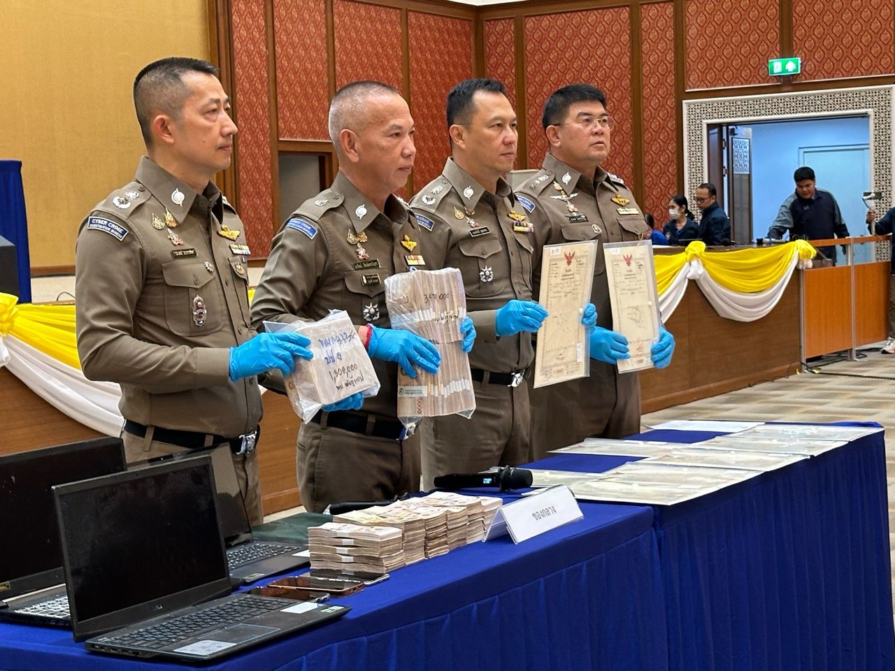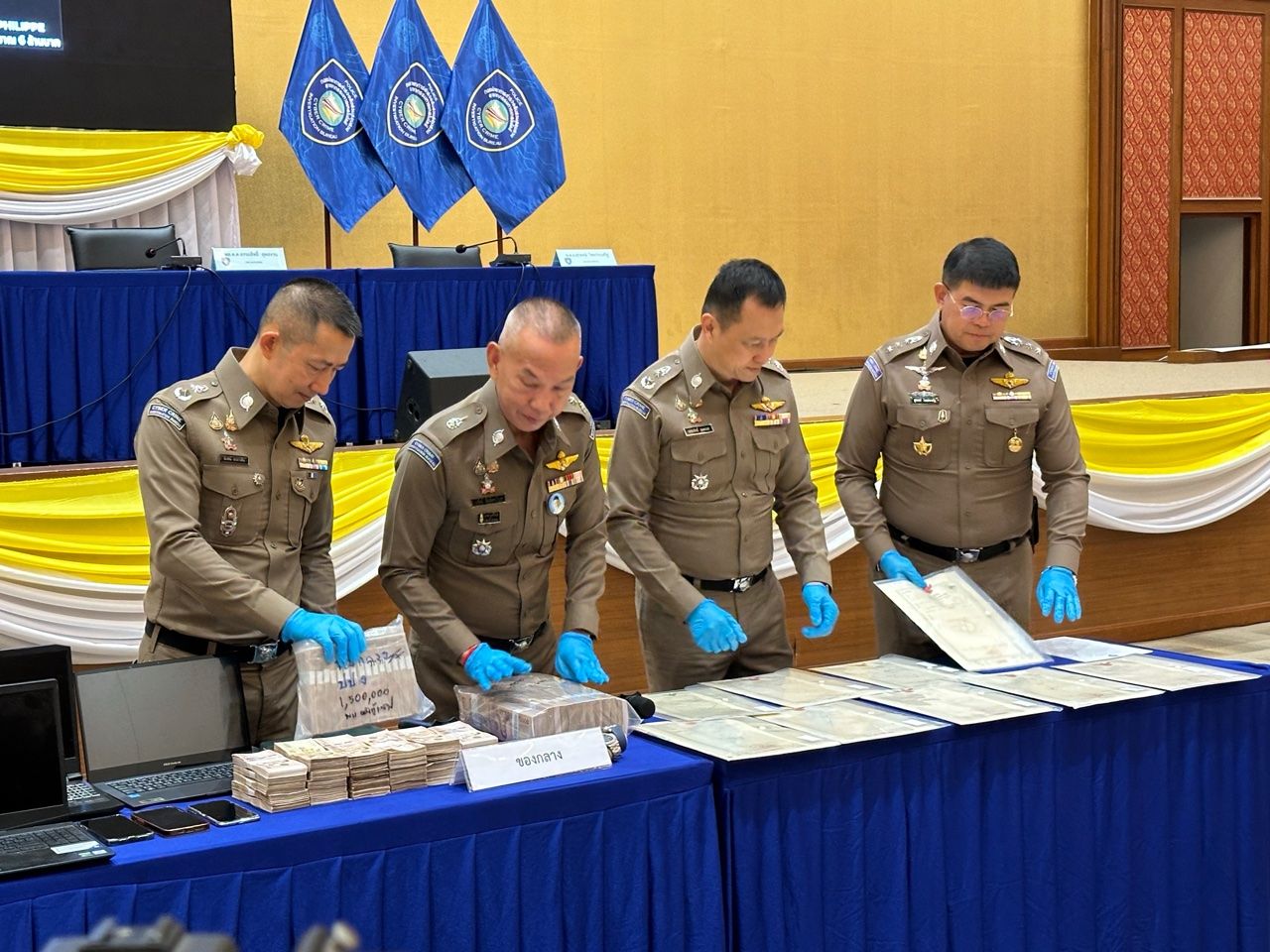 จุดที่ 3 เข้าตรวจค้นบ้านเลขที่ 140/14 ม.6 ซ.พัฒนาร่วมใจ ต.น้ำน้อย อ.หาดใหญ่ จ.สงขลา สามารถจับกุมนายภัทรวุธ ขุนต่างตา อายุ 26 ปี ทำหน้าที่ผู้จัดการ พร้อมตรวจยึดสมุดบัญชีธนาคาร จำนวน 5 เล่ม บัตรเอทีเอ็ม จำนวน 2 ใบ laptop 2 เครื่อง โทรศัพท์มือถือ 2 เครื่อง เงินสด จำนวน 3,000,000 บาท และโฉนดที่ดิน 2 แปลง