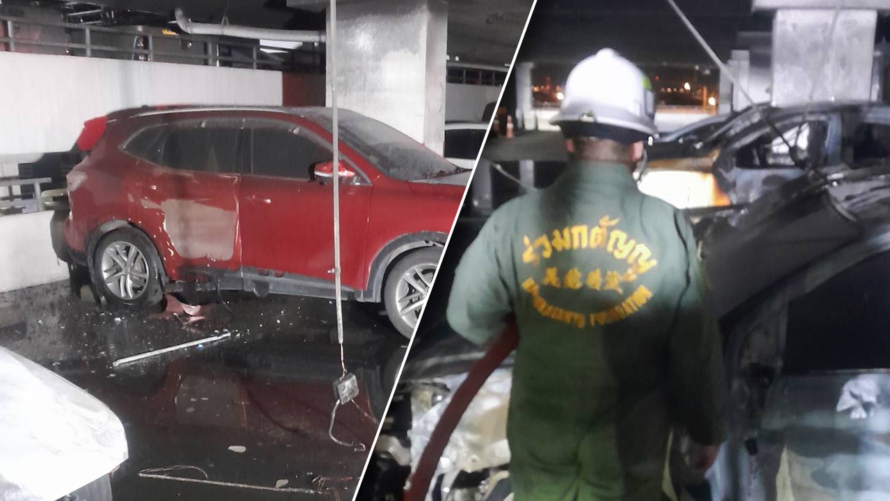 จากการตรวจสอบพบรถยนต์ถูกเพลิงลุกไหม้เสียหายจำนวน 6 คัน ได้แก่ 1. รถยนต์ยี่ห้อมาสด้า สีดำทะเบียน 4 ขด 362 กรุงเทพมหานคร ถูกเพลิงเผาไหม้เสียหายทั้งคัน 2. รถกระบะยี่ห้ออีซูซุ ทะเบียน ผร 4193 นครราชสีมา เสียหายทั้งคัน 3. รถยนต์ยี่ห้อฮอนด้า ทะเบียน กธ 8811 ตรัง เสียหายทั้งคัน 4. รถกระบะยี่ห้อนิสสัน สีบรอนซ์ ทะเบียน 2ฒม 4841 กรุงเทพมหานคร กระจกหน้าแตก สีได้รับความเสียหาย 5. รถยนต์ยี่ห้อโตโยต้า สีบรอนซ์ ทะเบียน บง 1036 แม่ฮ่องสอน และ 6. รถยนต์ยี่ห้อเอ็มจี สีแดง ทะเบียน 9 กฬ 9495 กรุงเทพมหานคร สีรถได้รับความเสียหาย โดยไม่มีผู้ได้รับบาดเจ็บและเสียชีวิต
