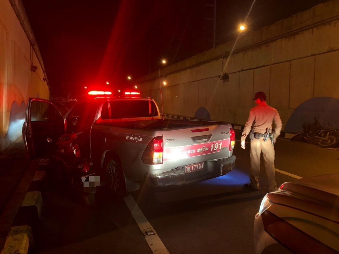 ที่เกิดเหตุ พบชายวัยรุ่น จำนวน 2 คน กำลังปีนบันได ใช้คีมตัดสายไฟฟ้า ซึ่งอยู่ภายในอุโมงค์ทางลอด เมื่อเห็นเจ้าหน้าที่ตำรวจจึงได้กระโดดลงจากบันได และวิ่งหนีขึ้นรถจักรยานยนต์คนละคัน เจ้าหน้าที่ตำรวจจึงวิ่งไล่จับและควบคุมตัวได้ทั้ง 2 คน