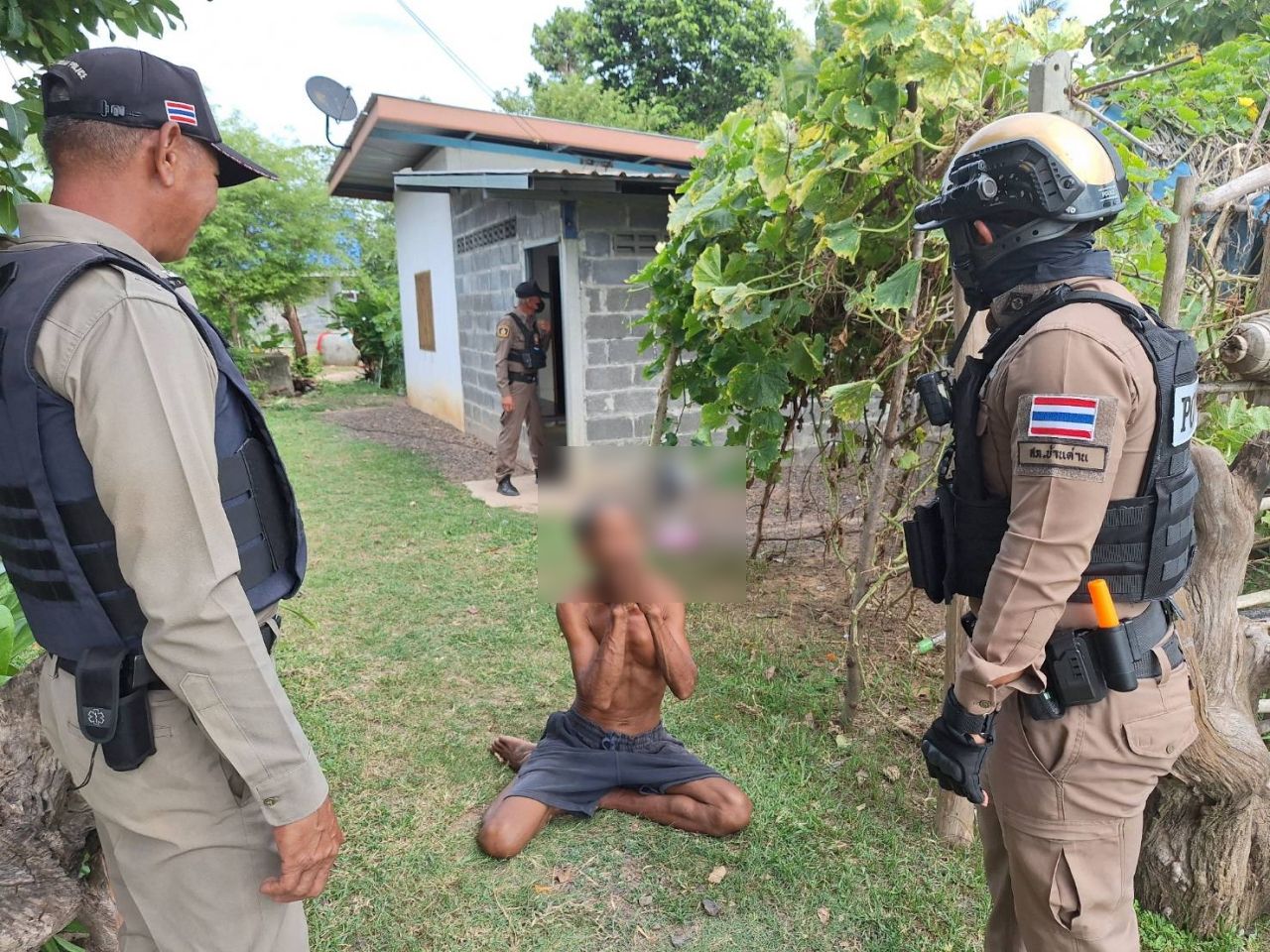 ส่วนผู้ก่อเหตุ คือ นายปุ่ม หรือดำ ตรีวิเศษ อายุ 53 ปี บ้านเลขที่ 26 ม.9 บ้านสองห้อง ต.บ้านด่าน อ.บ้านด่าน จ.บุรีรัมย์ ยังอยู่ในอาการเมาสุราอย่างหนัก ตำรวจเข้าไปตรวจค้นภายในบ้านพบค้อนที่ใช้ก่อเหตุทุบหม้อมิเตอร์ไฟฟ้า