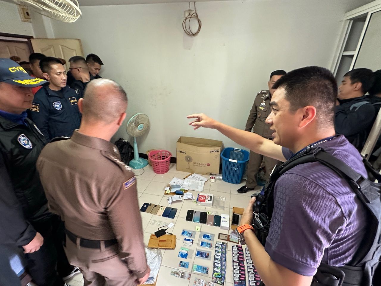 เมื่อเวลา 09.00 น. วันที่ 9 ม.ค. 68 พล.ต.ท.ไตรรงค์ ผิวพรรณ ผบช.สอท. นำกำลังเปิดปฏิบัติการตรวจค้นห้องพัก 2 ห้อง ภายในอพาร์ทเมนท์แห่งหนึ่ง แขวงนวลจันทร์ เขตบึงกุม กรุงเทพฯ เข้าจับกุม MR. LI CHUYUAN อายุ 49 ปี และ MR. ZHU XIANGWU อายุ 47 ปี สัญชาติจีน พร้อมตรวจยึดของกลาง รถยนต์ยี่ห้อฮอนด้า ซีอาร์วี สีบรอนซ์ ทะเบียน กทม. ภายในติดตั้งเครื่องส่ง SMS ปลอม (False Base Station) โทรศัพท์มือถือ 11 เครื่อง สมุดบัญชีธนาคาร บัตรเอทีเอ็ม และซิมโทรศัพท์มือถือ กว่า 30 รายการ