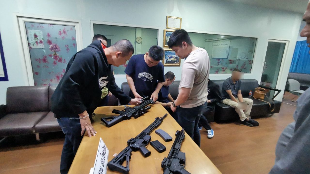 และ 6. รถยนต์ Honda รุ่น CRV สีดำ ทะเบียน ชต 3422 ระยอง 1 คัน ทั้งหมดเป็นปืนบีบีกันดัดแปลงให้สามารถยิงกระสุนจริงได้ เบื้องต้นแจ้งข้อหาว่า มีอาวุธปืนไว้ในความครอบครองโดยไม่ได้รับอนุญาตและพาอาวุธปืนไปในเมือง หมู่บ้าน ทางสาธารณะโดยไม่มีเหตุอันควร โดย ด.ต.มณู รับสารภาพตลอดข้อกล่าวหา