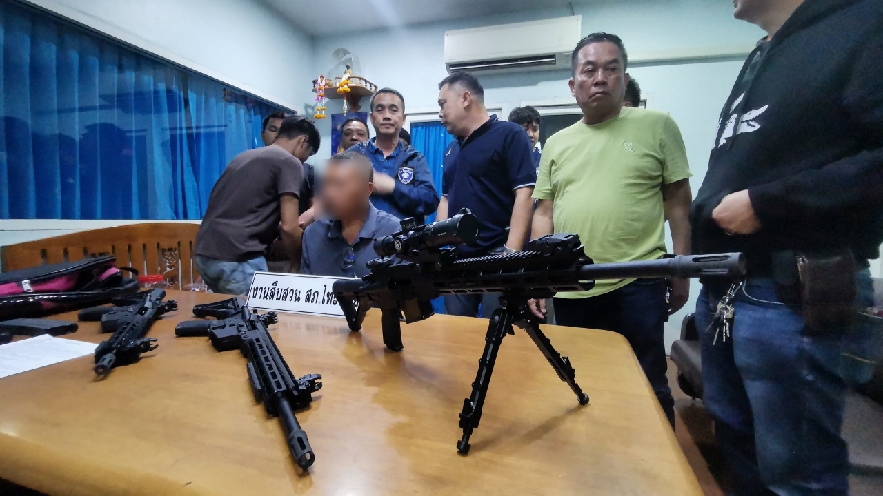นนทบุรี – อดีต ตชด. เจอรวบกลางลานจอดรถห้างย่านไทรน้อย หลังรับจ๊อบดัดแปลงบีบีกันยิงได้แบบปืนจริง อ้างไม่ได้ขาย แต่เพื่อนสั่งมาให้ทำ ยึดของกลางเพียบ