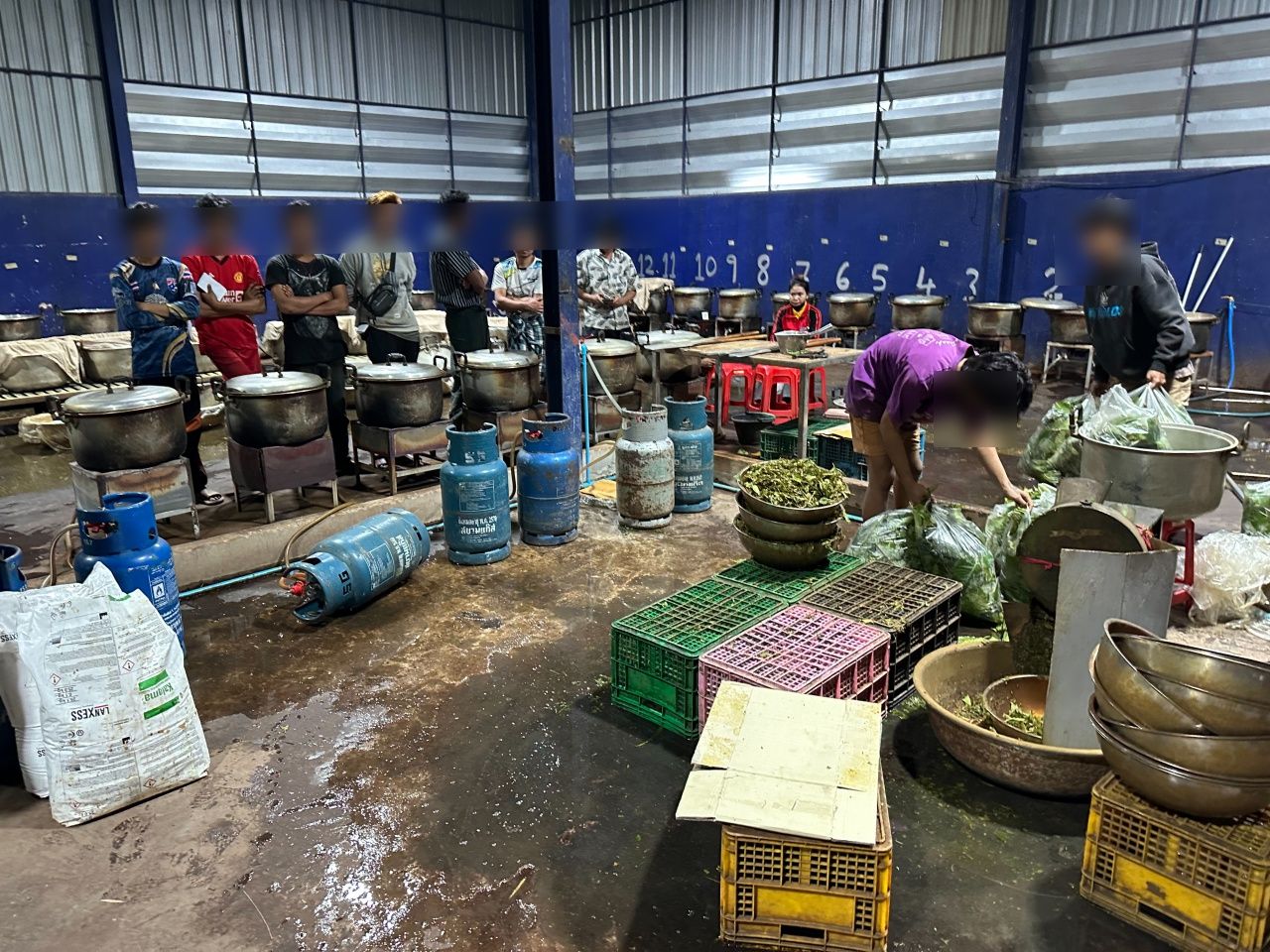 ชุดสืบจังหวัดฉะเชิงเทรา บุกทลายโกดังโรงงานผลิตน้ำกระท่อมรายใหญ่ ใส่สารกันบูด พบทำน้ำตาลสด-น้ำลำไยส่งขายบังหน้า แรงงานต่างด้าวเขมร พม่า กำลังต้ม เจอเจ้าหน้าที่เข้าจับกุม วิ่งหนีเตลิด