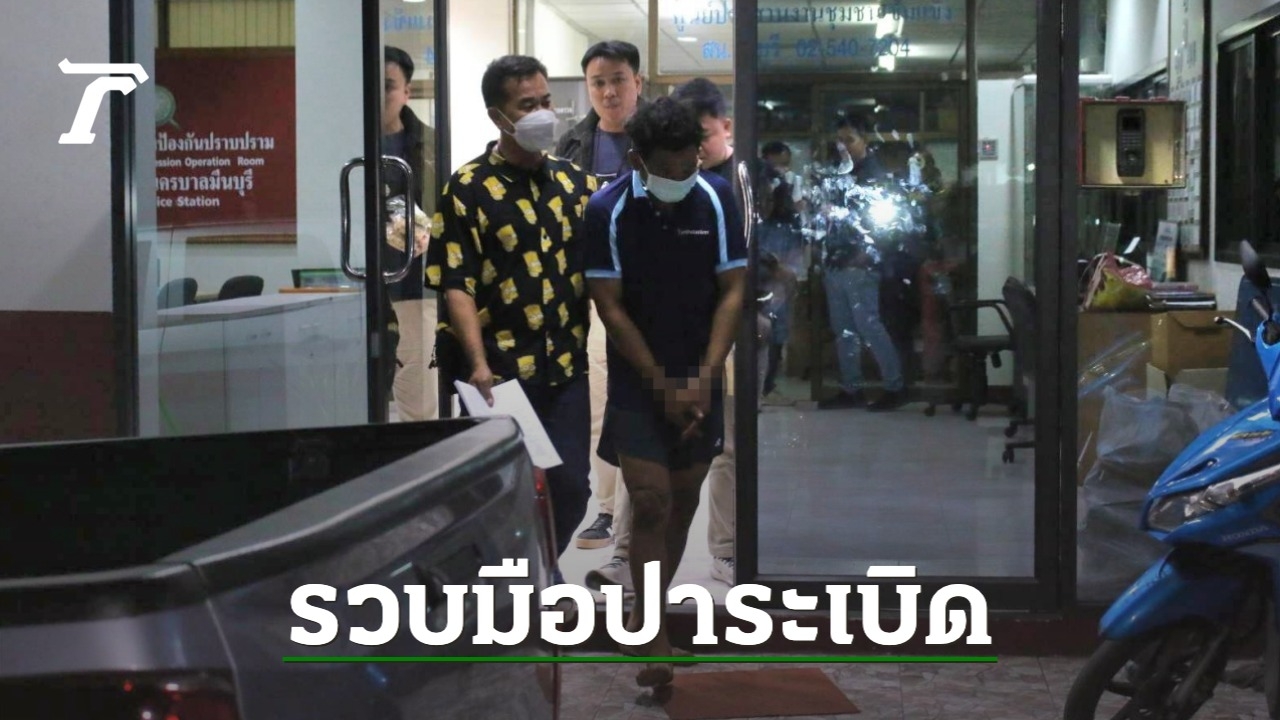 ความคืบหน้าล่าสุด ที่ สน.มีนบุรี เมื่อเวลา 22.00 น. วันที่ 25 ม.ค. 68 พล.ต.ต.นพศิลป์ พูลสวัสดิ์ รอง ผบช.น. พล.ต.ต.โชติวัฒน์ เหลืองวิลัย ผบก.สส.บช.น. พล.ต.ต.เกียรติกุล สนธิเณร ผบก.น.3 พ.ต.อ.พีรรัฐ โยมา ผกก. สน.สุวินทวงศ์ นายพลภูมิ วิภัติภูมิประเทศ ผู้ช่วย รมว.วัฒนธรรม พร้อมชุดสืบสวนนครบาล สืบบก.น.2,3 และสืบสวนสน.มีนบุรี คันนายาว และสุวินทวงศ์ ร่วมกันแถลงจับกุม นายชนะภัย ไชยรักษ์ หรือนิว อายุ 27 ผู้ต้องหา พร้อมของกลางรถจยยฮอนด้า คลิก สีน้ำเงิน ทะเบียนสระแก้ว เสื้อผ้า หมวกกันน็อกที่ใช้สวมใส่วันเกิดเหตุ ชิ้นส่วนประทัดยักษ์ไล่นก โดยจับกุมได้ที่บริเวณบ้านพัก ซอยสุวินทวงศ์ 50 แขวงลำผักชี เขตหนองจอก กทม. เมื่อช่วงเย็นวันเดียวกัน