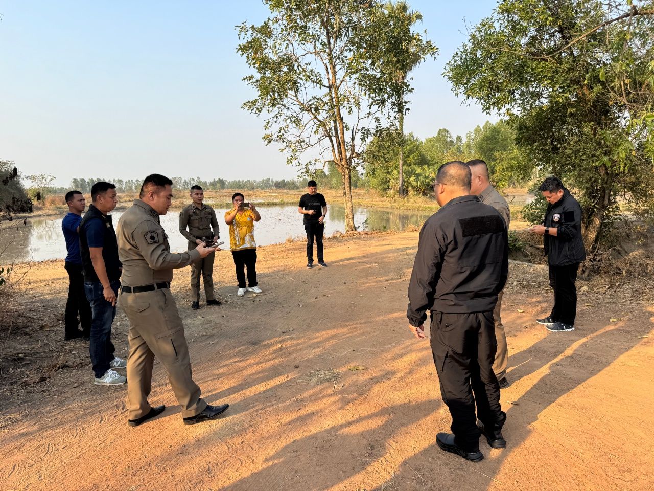 หลังจากนั้นได้เดินทางไปยังบริเวณทุ่งนา ม.8 บ้านร้อยไร่ ต.คลองขลุง อ.คลองขลุง จ.กำแพงเพชร บริเวณจุดที่มีชาวบ้านรายหนึ่งอ้างว่าได้ยินคนคุยกันเหมือนทะเลาะกันเสียงดัง จากนั้นก็ได้ยินเสียงปืนดัง ในช่วงเวลาประมาณ 2-3 ทุ่มของวันที่ 12 ม.ค. 68 วันเดียวกันกับที่ทั้ง 3 คนหายไป โดยชาวบ้านเล่าว่าไม่กล้าออกมาดูเพราะกลัวอันตราย โดยได้มาดูตอนเช้าพบว่ามีรอยเลือด และมีกระสุนปืนตกอยู่ในจุดดังกล่าว จึงได้แจ้งผู้นำท้องถิ่นให้ทราบและแจ้งตำรวจให้เข้าตรวจสอบ