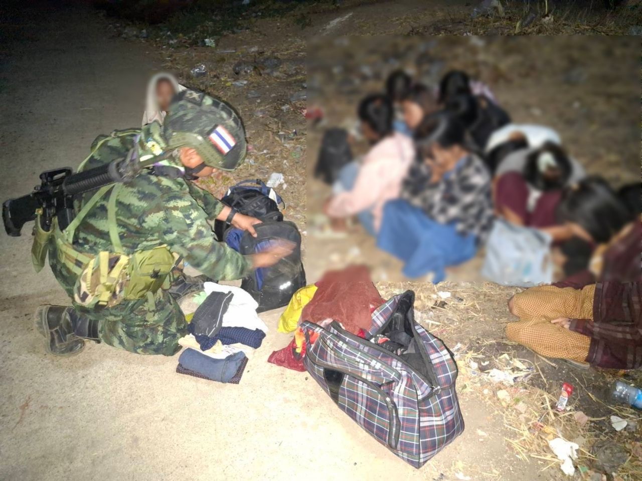 จัดกำลังพลทหาร ทำการลาดตระเวนเฝ้าตรวจช่องทางข้าม บริเวณสะพานมิตรภาพ (ไทย - พม่า) แห่งที่ 1 พบกลุ่มคนกำลังเดินถือกระเป๋าเสื้อผ้าหิ้วถุงน้ำบริเวณบ้านริมเมย หมู่ที่ 2 ต.ท่าสายลวด อ.แม่สอด จ.ตาก จึงเข้าตรวจสอบกลุ่มบุคคลดังกล่าว
