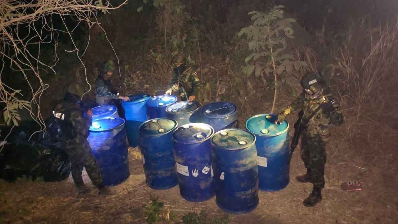 ขณะที่ทหารหน่วยเฉพาะกิจราชมนู กองกำลังนเรศวร กำลังลาดตระเวนและเฝ้าตรวจบริเวณช่องทางบ่อนาทะ ม.9 ต.แม่จัน อ.อุ้มผาง จ.ตาก เพื่อป้องกันและสกัดกั้นการกระทำผิดกฎหมาย พบถังน้ำมันเหล็ก สีน้ำเงินขนาดบรรจุ 200 ลิตร จำนวน 10 ถัง เป็นน้ำมันโซล่า ซุกซ่อนไว้ในป่าบริเวณริมแม่น้ำเมย เจ้าหน้าที่จึงทำการตรวจยึดเพื่อตรวจสอบต่อไป