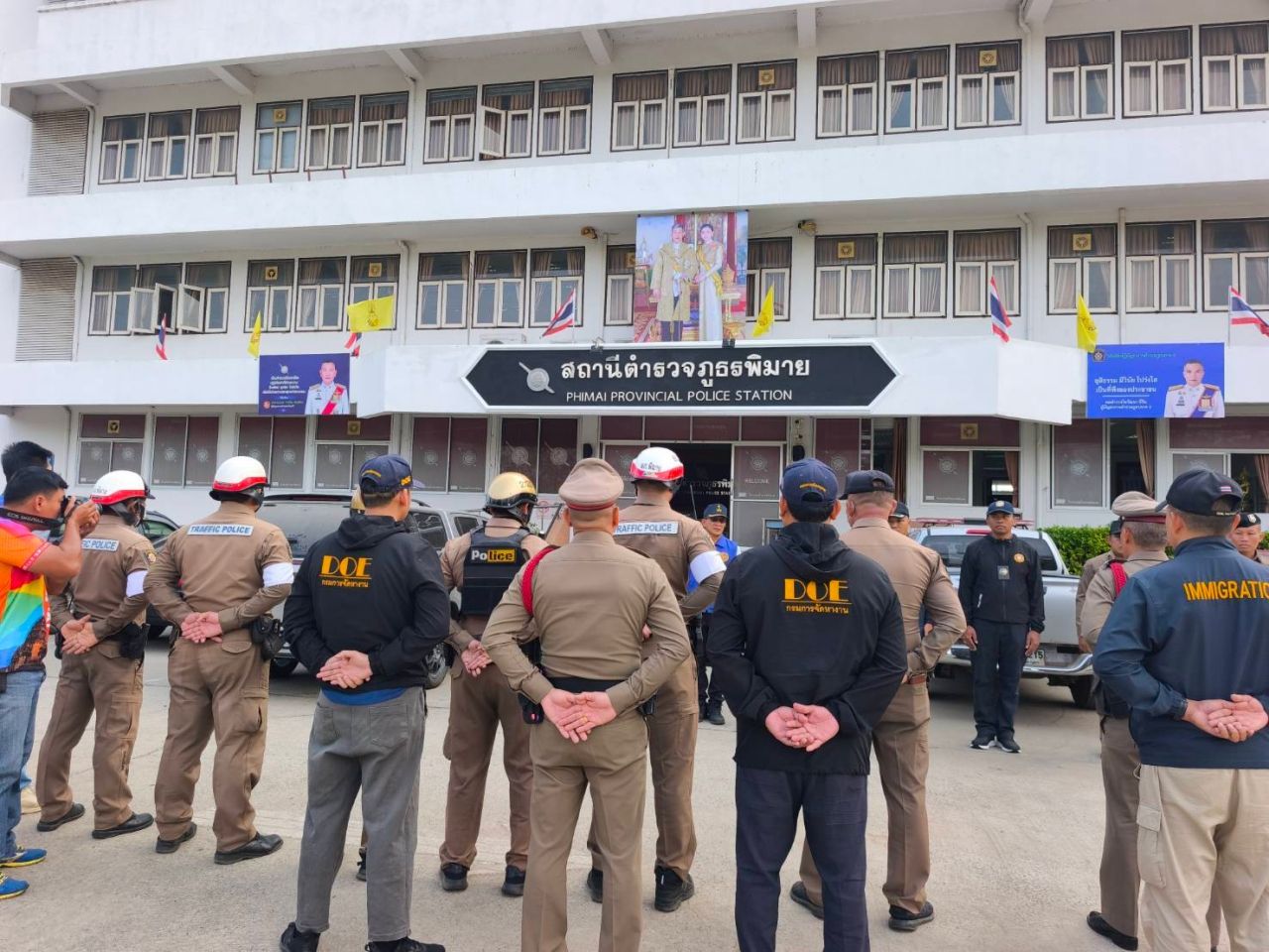 เมื่อวันที่ 22 กุมภาพันธ์ 2568 ที่ สภ.พิมาย จ.นครราชสีมา นายศิวะเสก สินโทรัมย์ นายอำเภอพิมาย พ.ต.อ.สิทธิศักดิ์ พรมหมื่นไวย ผกก.สภ.พิมาย ได้ร่วมกันปล่อยแถวเจ้าหน้าที่ตำรวจสายตรวจ 191 เจ้าหน้าที่ อส. เจ้าหน้าที่สำนักงานตรวจคนเข้าเมือง เจ้าหน้าที่กรมแรงงานจังหวัดนครราชสีมา เพื่อร่วมกันปูพรมตรวจค้นกลุ่มเป้าหมาย ภายในโครงการหมู่บ้านเอื้ออาทร ตำบลในเมือง อำเภอพิมาย